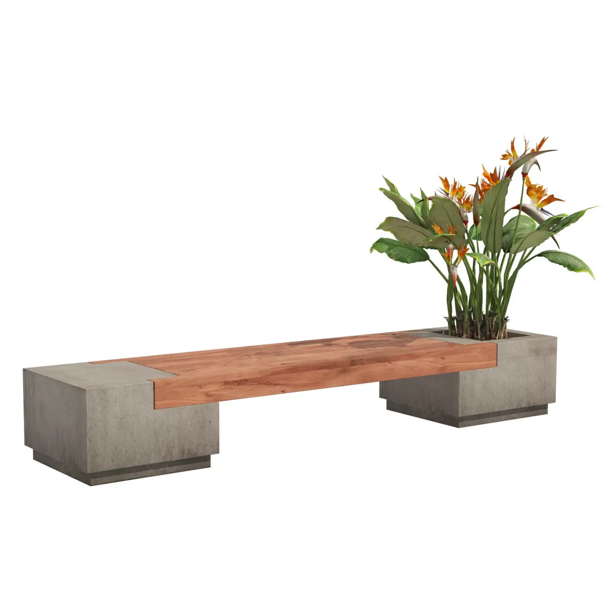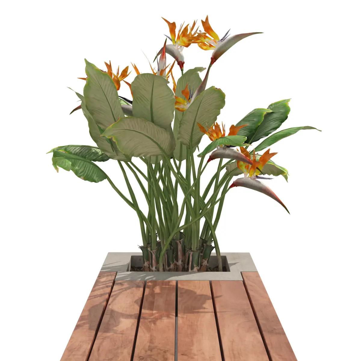 Highly detailed and highly optimized 3d model of Landscape bench with Bird Of Paradise flower.