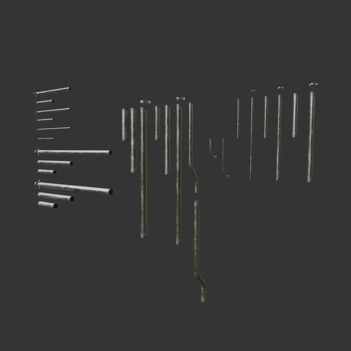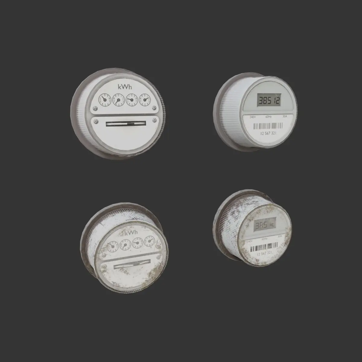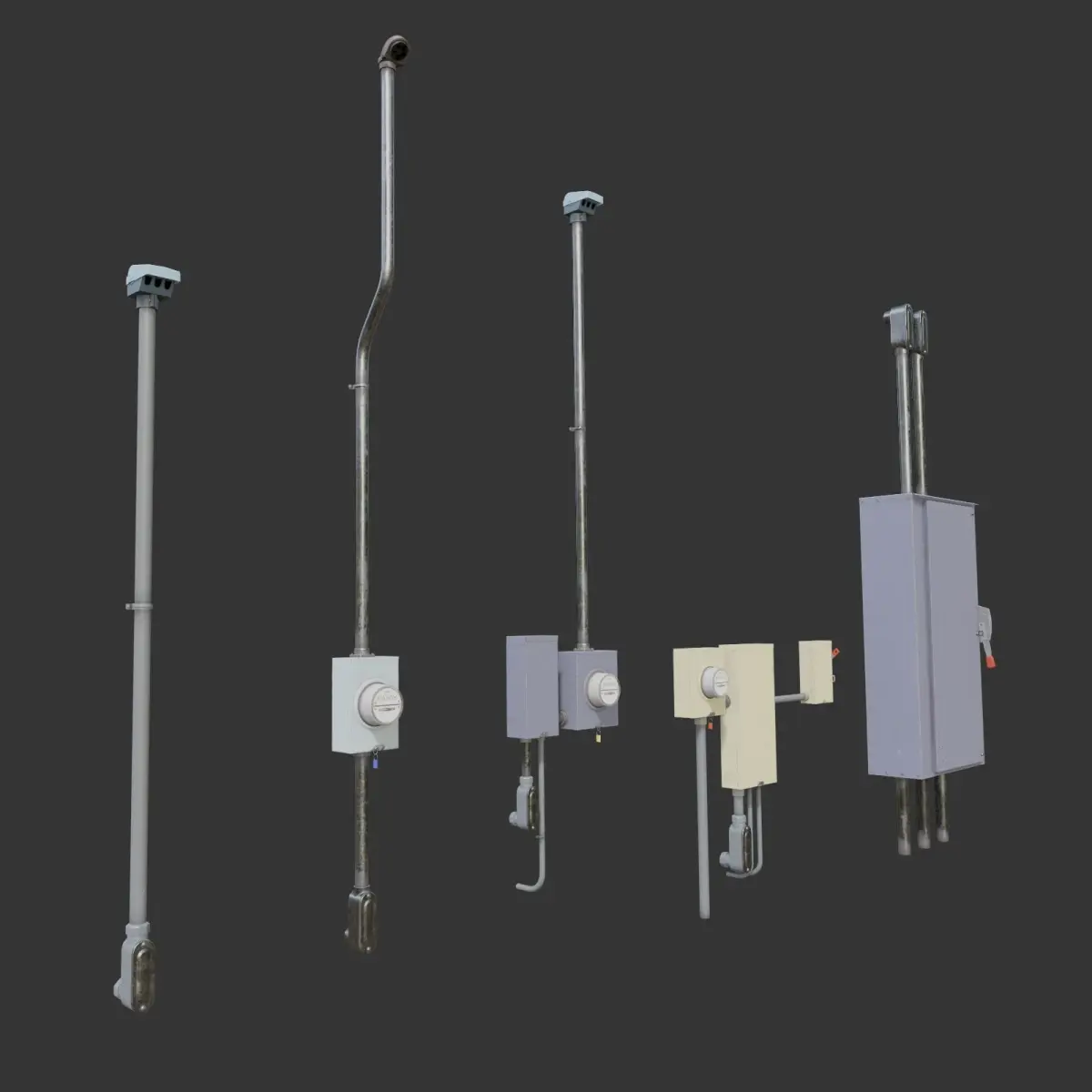 This is a set of outdoor electrical components such as watt meters, cabinets, safety switches, pipes, fittings e.t.c.The set contains normal and rusted version of textures.Also in this set you can find a few prebuilded assemblies.