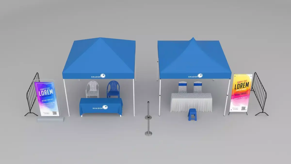 Enhance your virtual events, simulations, or architectural visualizations with this high-quality 3D model of an outdoor event booth. Perfect for fairs, exhibitions, trade shows, and promotional setups, this model features:Two connected 3x3m pop-up tents/canopies with branding spaceTables, chairs, banners, and crowd control barriersFully modular design, easy to adjust, move, or duplicateTextures included for realistic visualizationIdeal for marketing presentations, event planning simulations, or 3D visualization projects