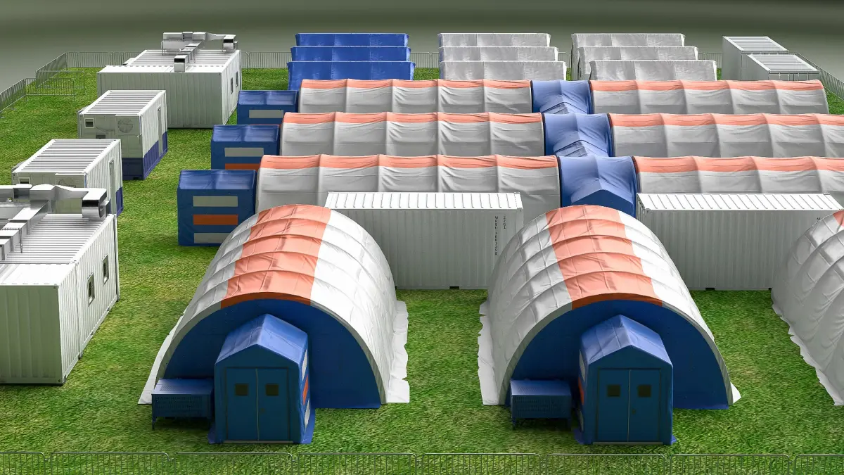 For emergency response planning, disaster management, healthcare infrastructure projects, medical training simulations, humanitarian aid visualizations, pandemic response demonstrations, health service campaigns, field hospital construction planning, government and NGO healthcare initiatives, and crisis management scenarios educational, or promotional projects.