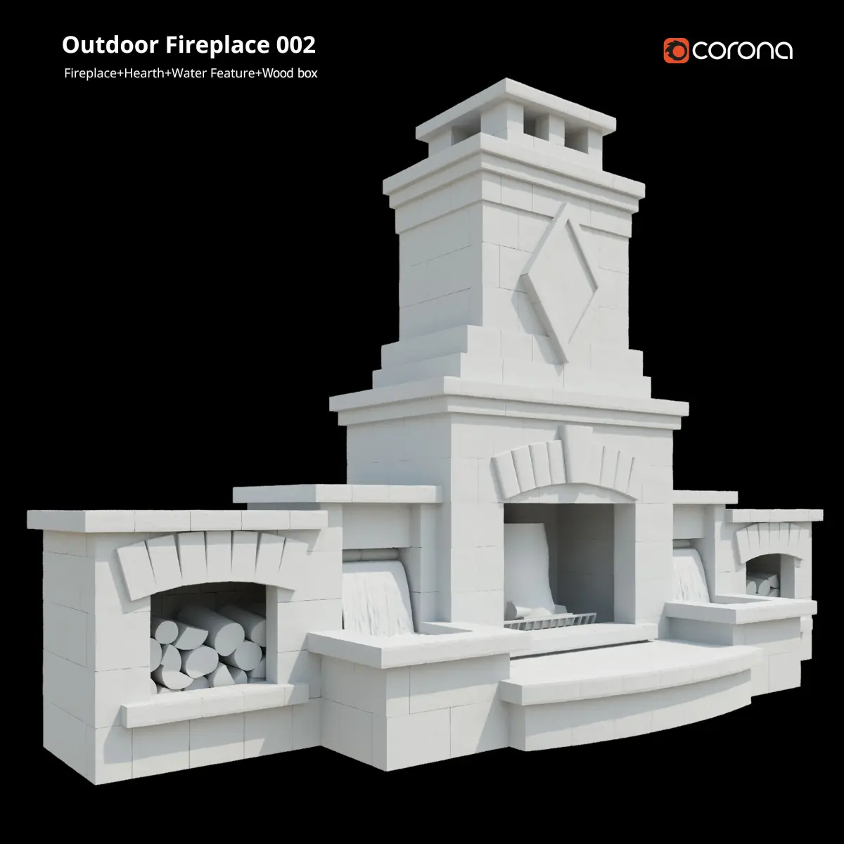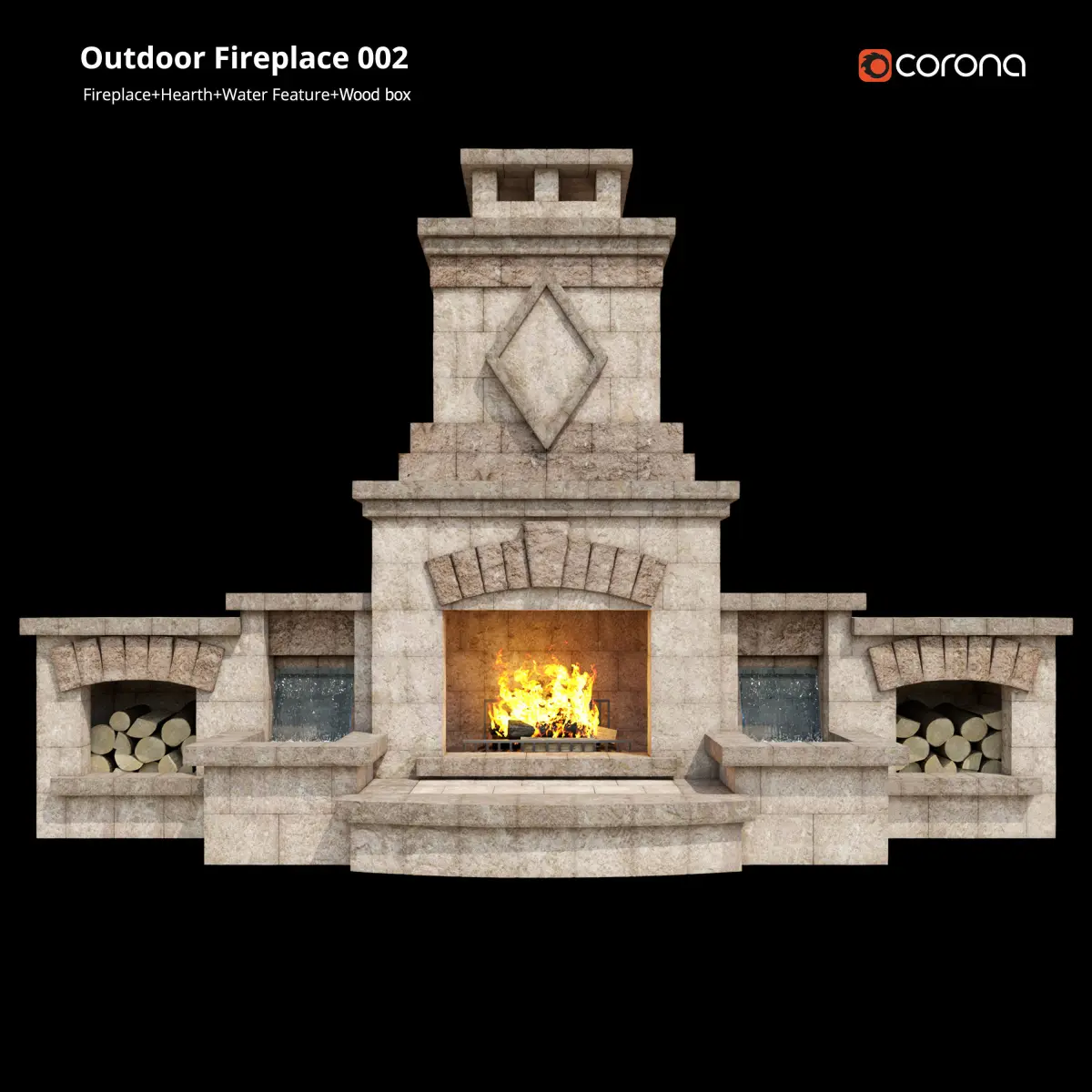 the archive file has model of a Ethnic Outdoor Fireplace (Fireplace + Hearth + Wood Box + water feature) also in the archive there are perspectives.Export File: FbxVray version: V-Ray 4.10.02Corona version: 5