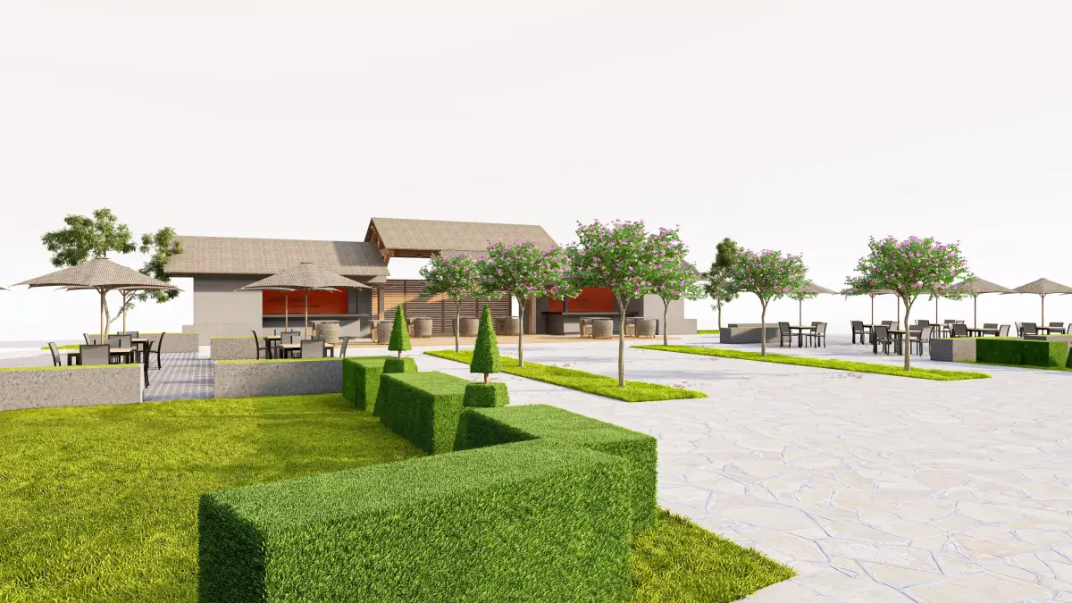 Casual Outdoor Seating: Various pockets of informal seating (benches, low walls, or individual chairs) are integrated throughout the softscape, designed for rest and observation.