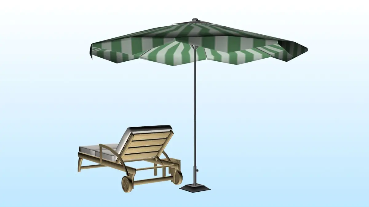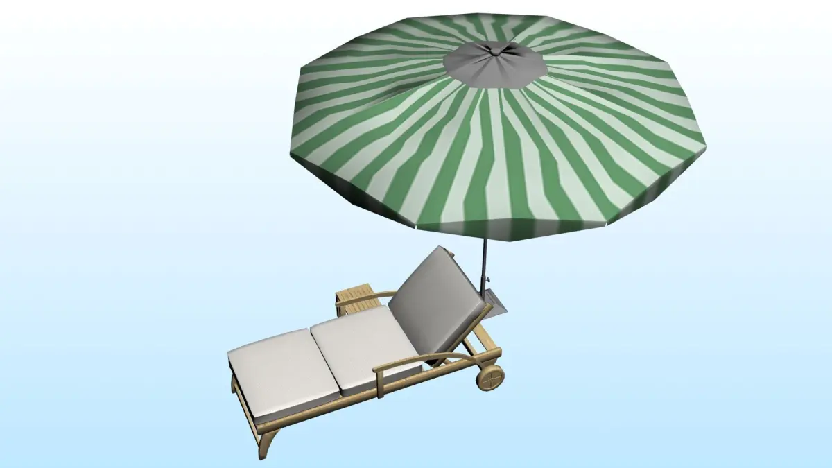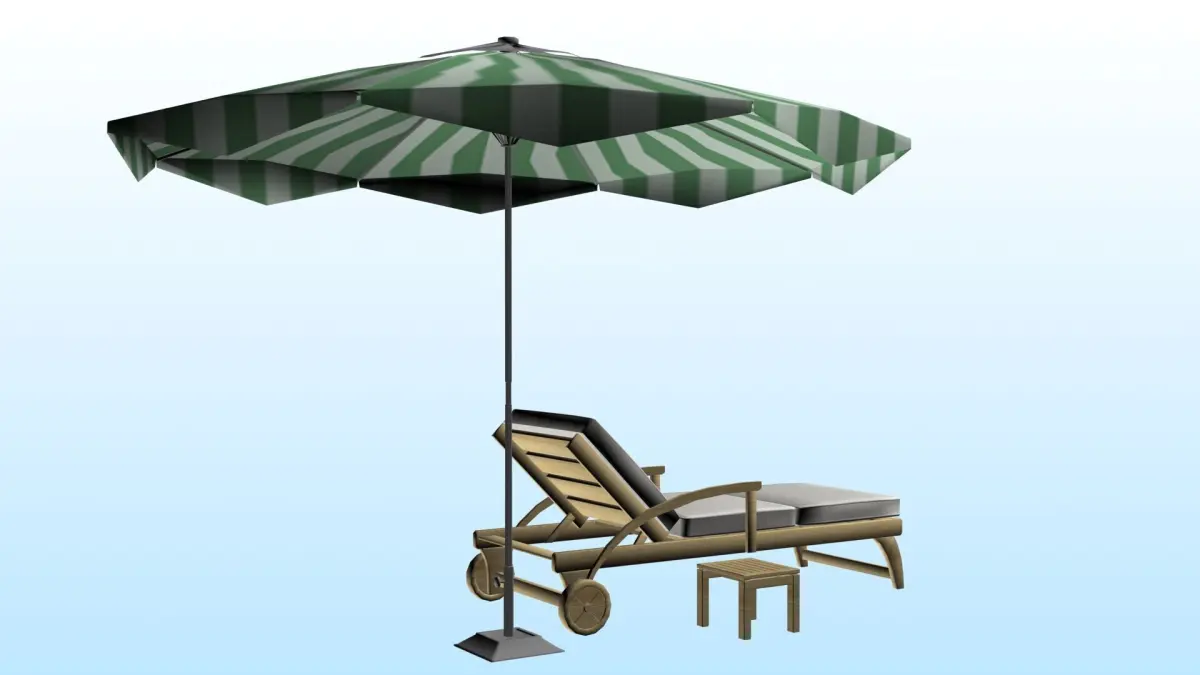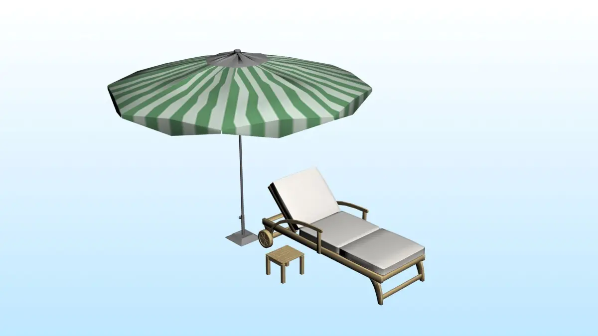 Geometry: There are a seashore umbrella, one bench and one side stool 3d models in this package.