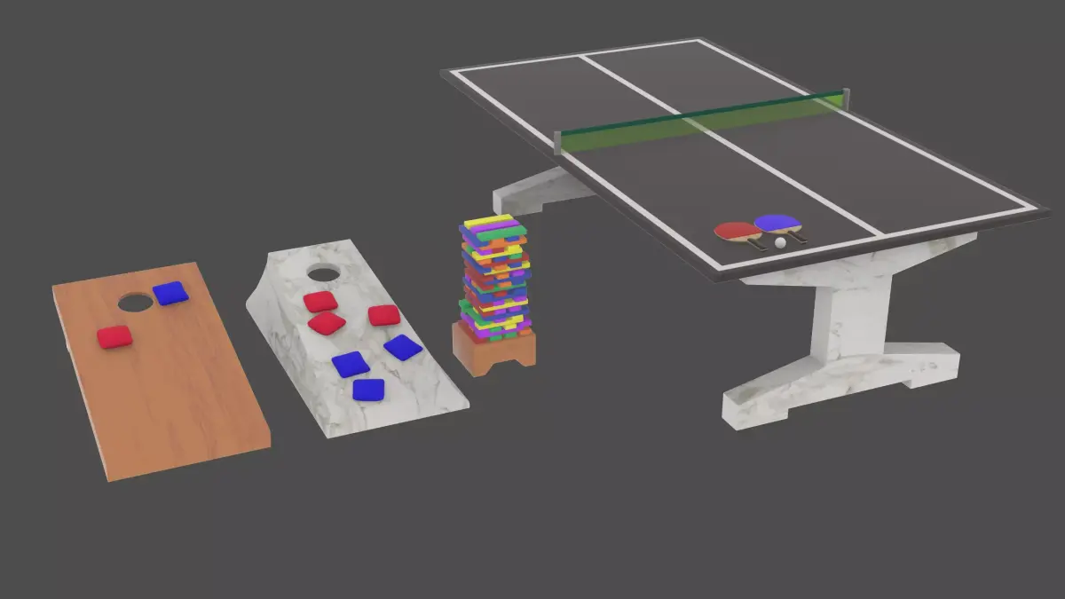Outdoor Games - Ping Pong, Jenga, Cornhole