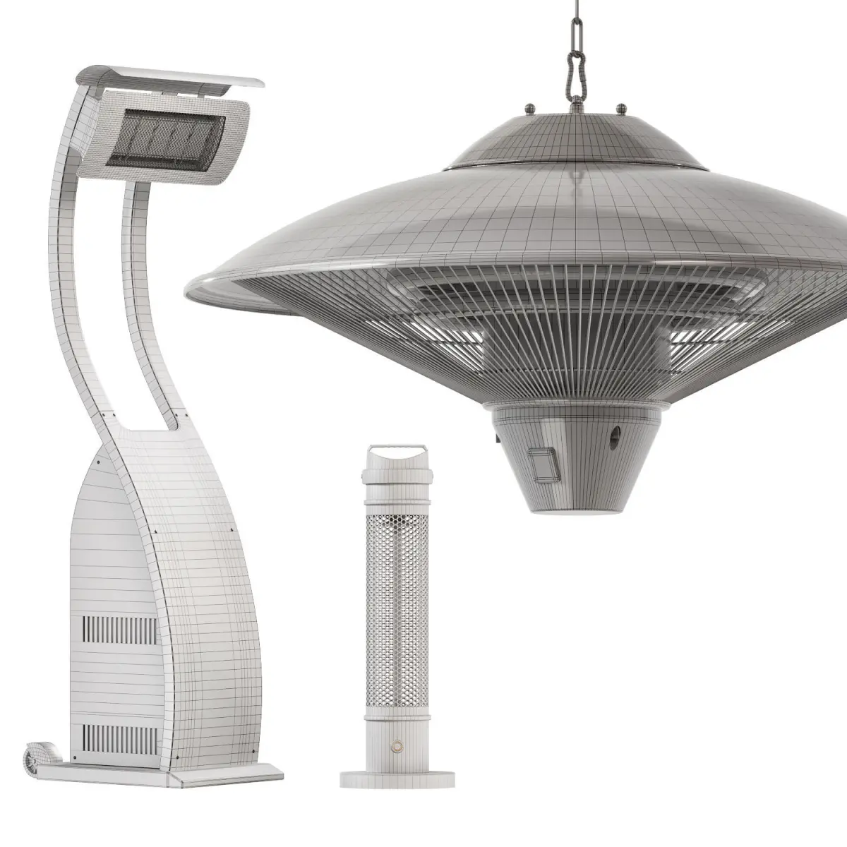 The set includes 3 outdoor heaters:Tungsten Smart-Heat PortableHanover 2729-BTU 120Ceiling Mounted Electric Heater