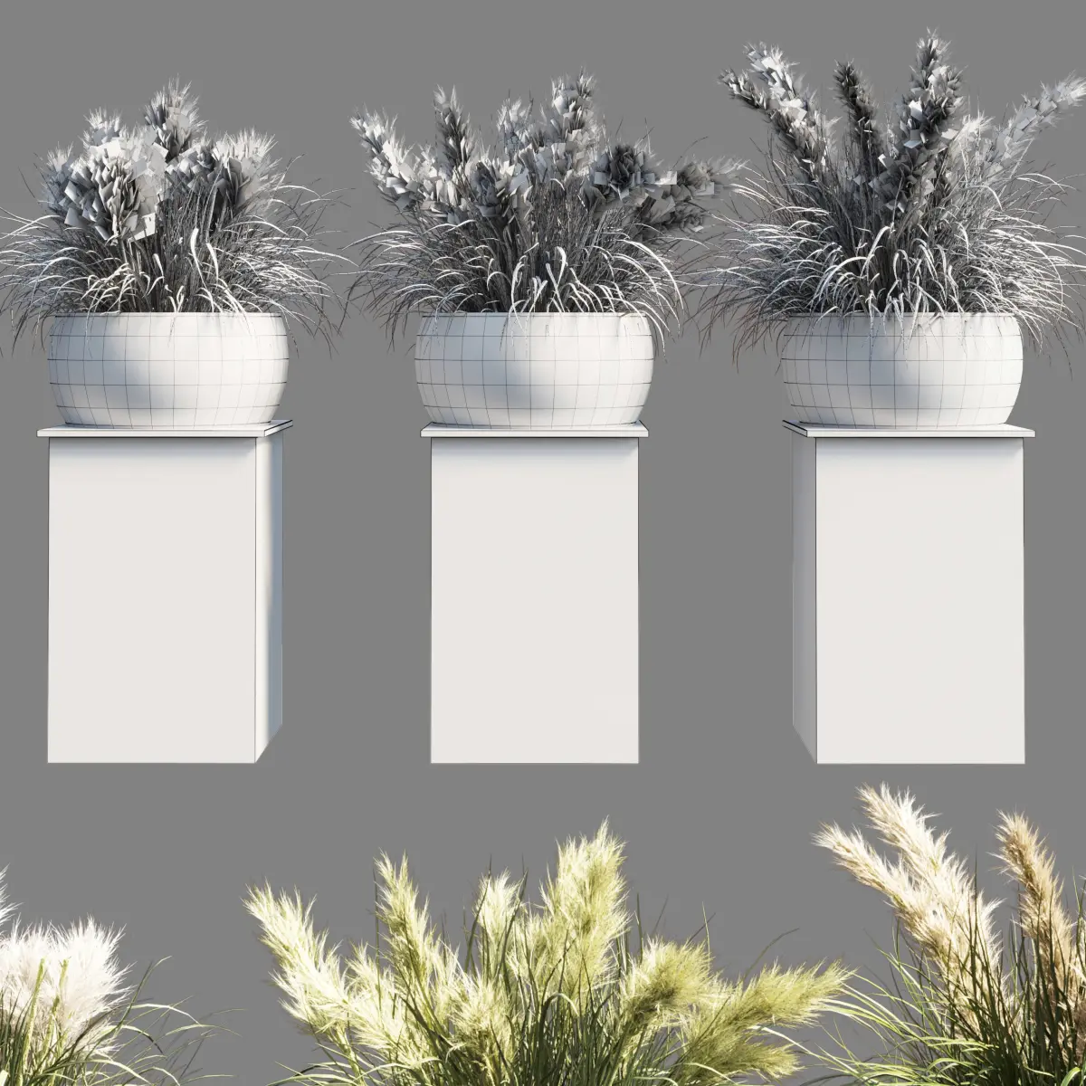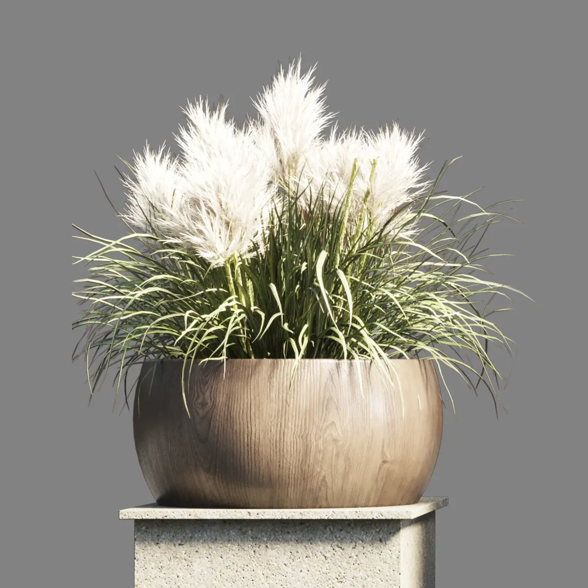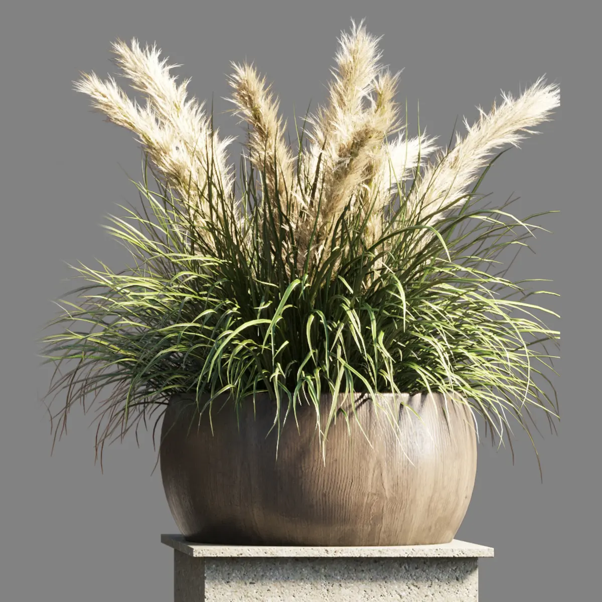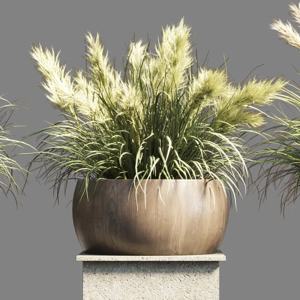 HomeCatalogoutdoor indoor pot palnt grass the dry pampas stand vase wooden 3D model