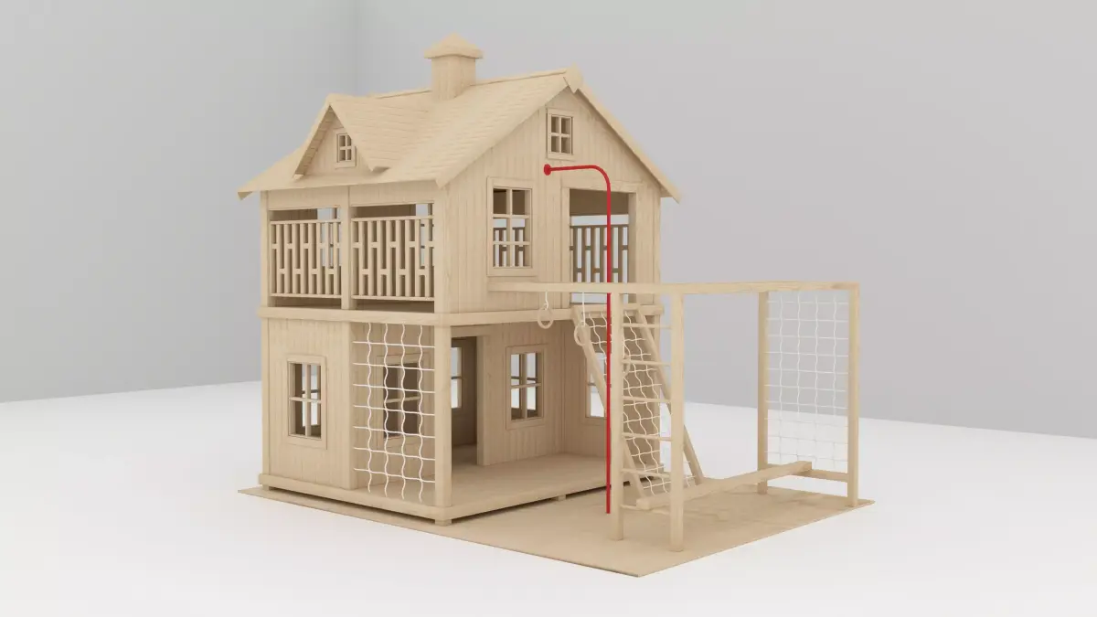 Detailed 3D Model of a Deluxe Two-Story Wooden Playhouse and Outdoor Playset