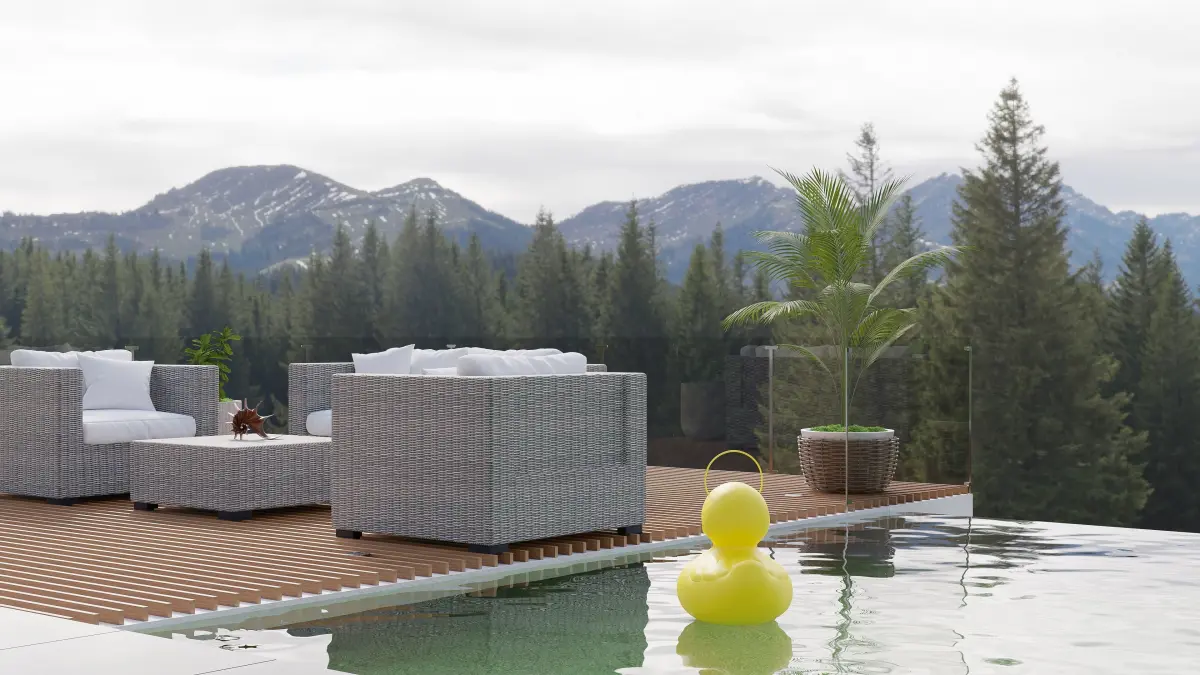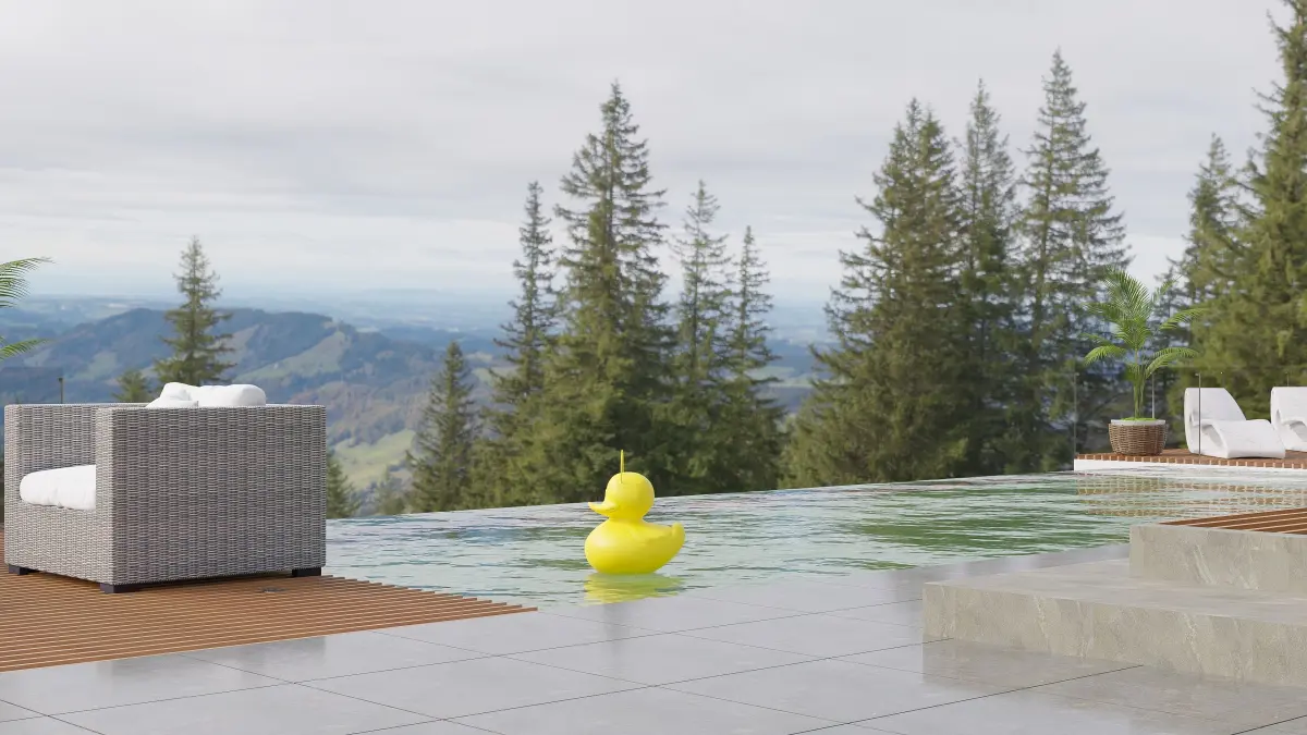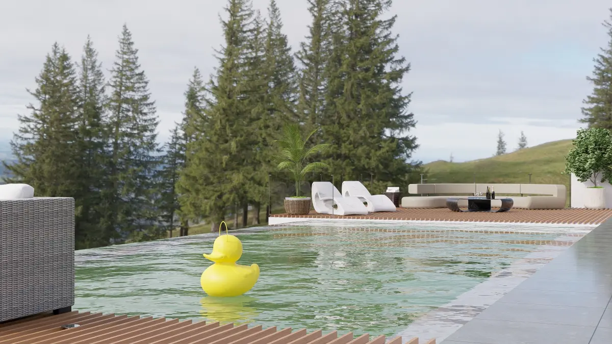 A playful outdoor lighting feature that is often seen on a patio or poolside. The luminous duck shaped lamp is sure to be a highlight in an exterior visualization.