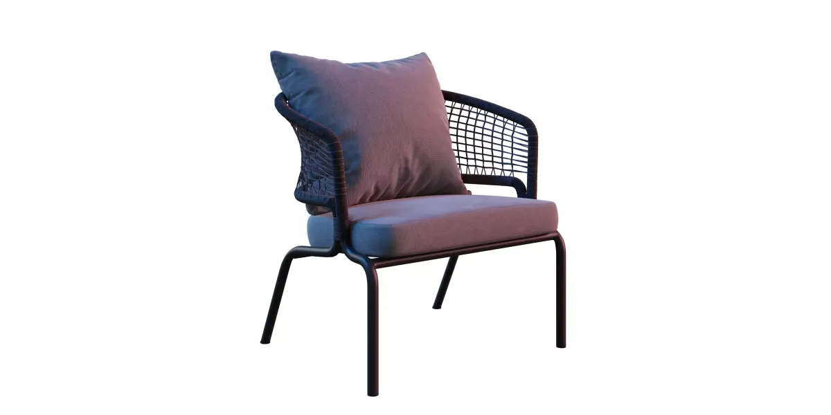 This 3D model has an outdoor lounge chair design. The 3D model of a lounge chair features a sturdy metal frame with woven backrest and soft cushions. It has a sleek and stylish look suitable for various outdoor settings. There is detailed texturing to mimic fabric and woven materials.Key Features:Type: This is a blender 3D model of a lounge chair.