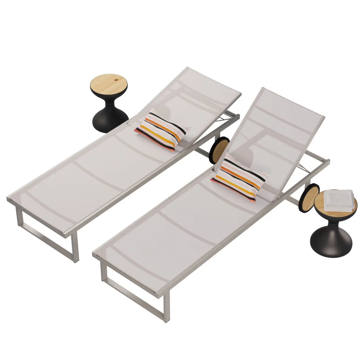 Outdoor patio Viesso allux sunlounger with metal-wooden stool