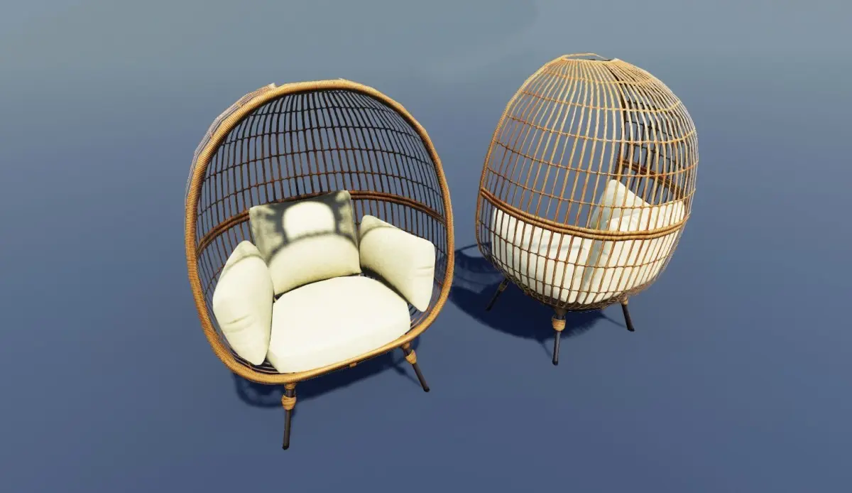 - 8 detailed furniture models, including chairs, tables, sofas, and a hammock.