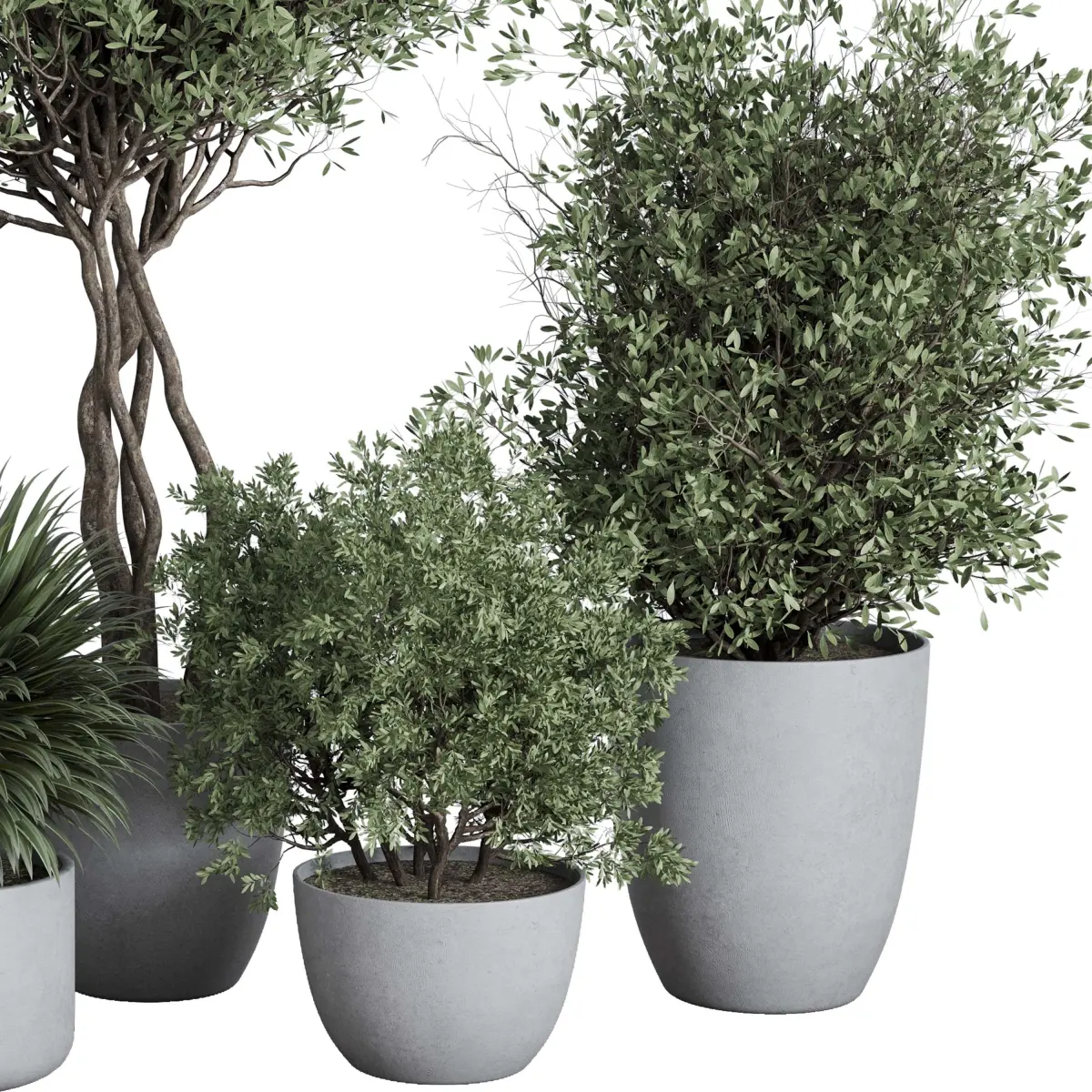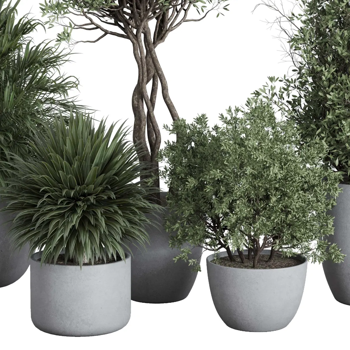outdoor plant set 156 plant tree palm bush concrete dirt vase