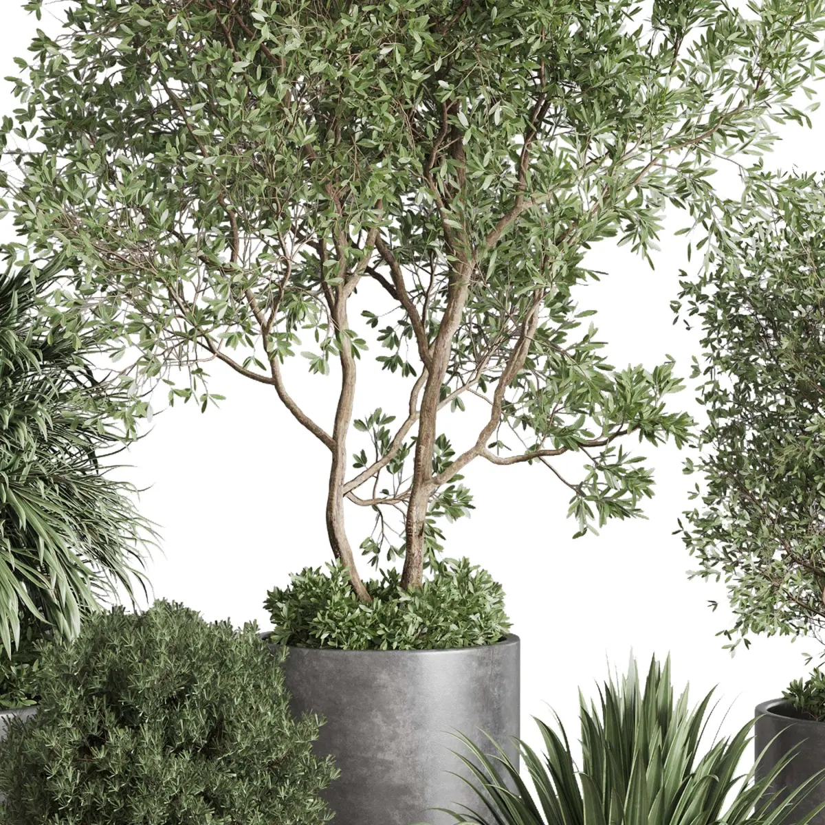 outdoor plant set 160 pot old tree bush palm in a concrete dirty vase