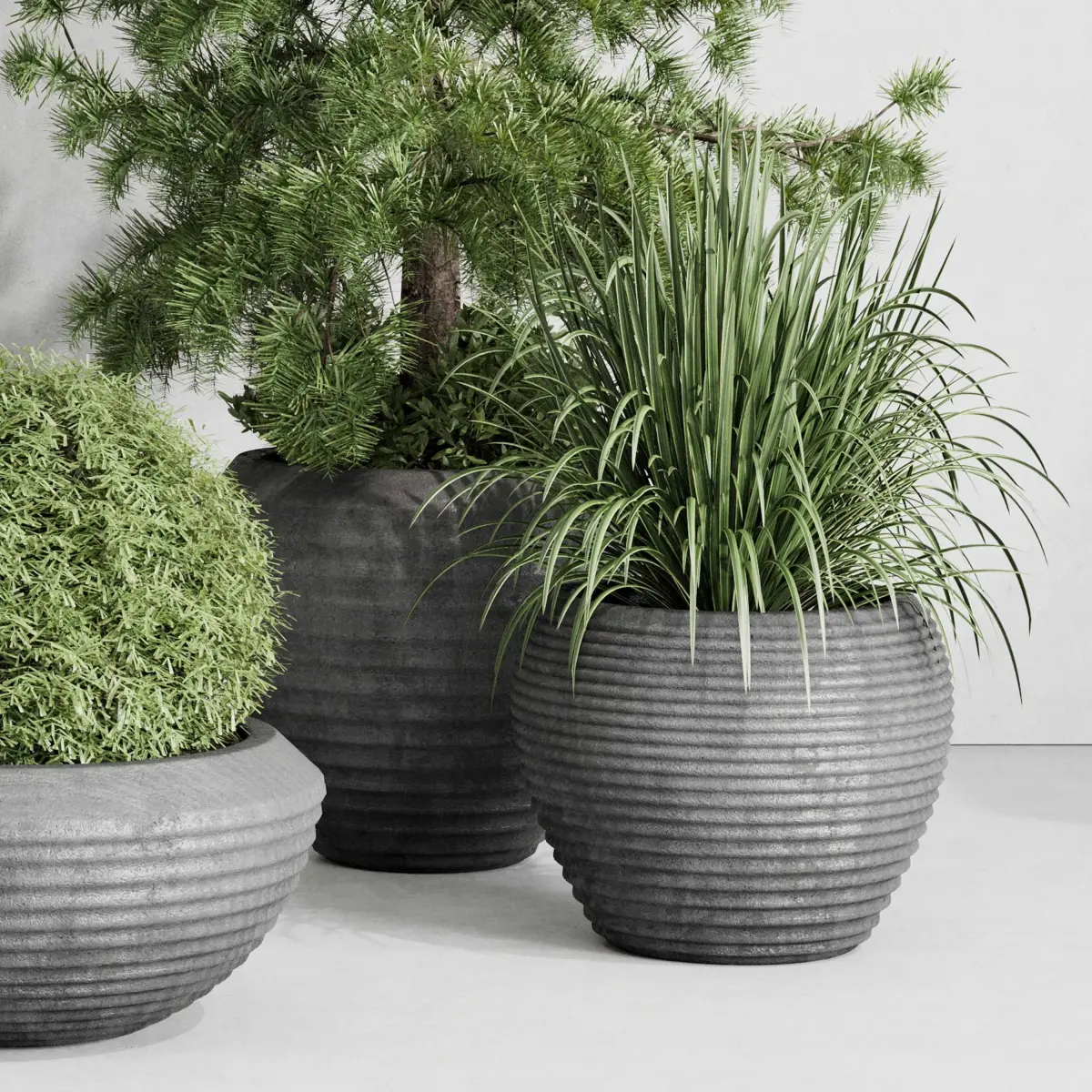 outdoor plant set 179 plant topiary tree pine grass vase dirty concrete