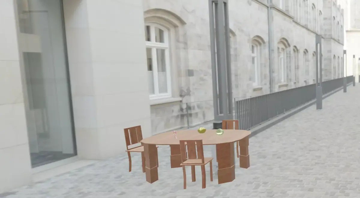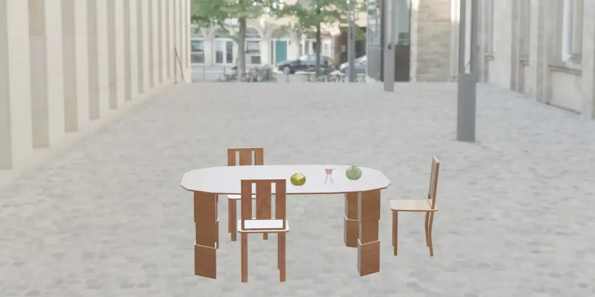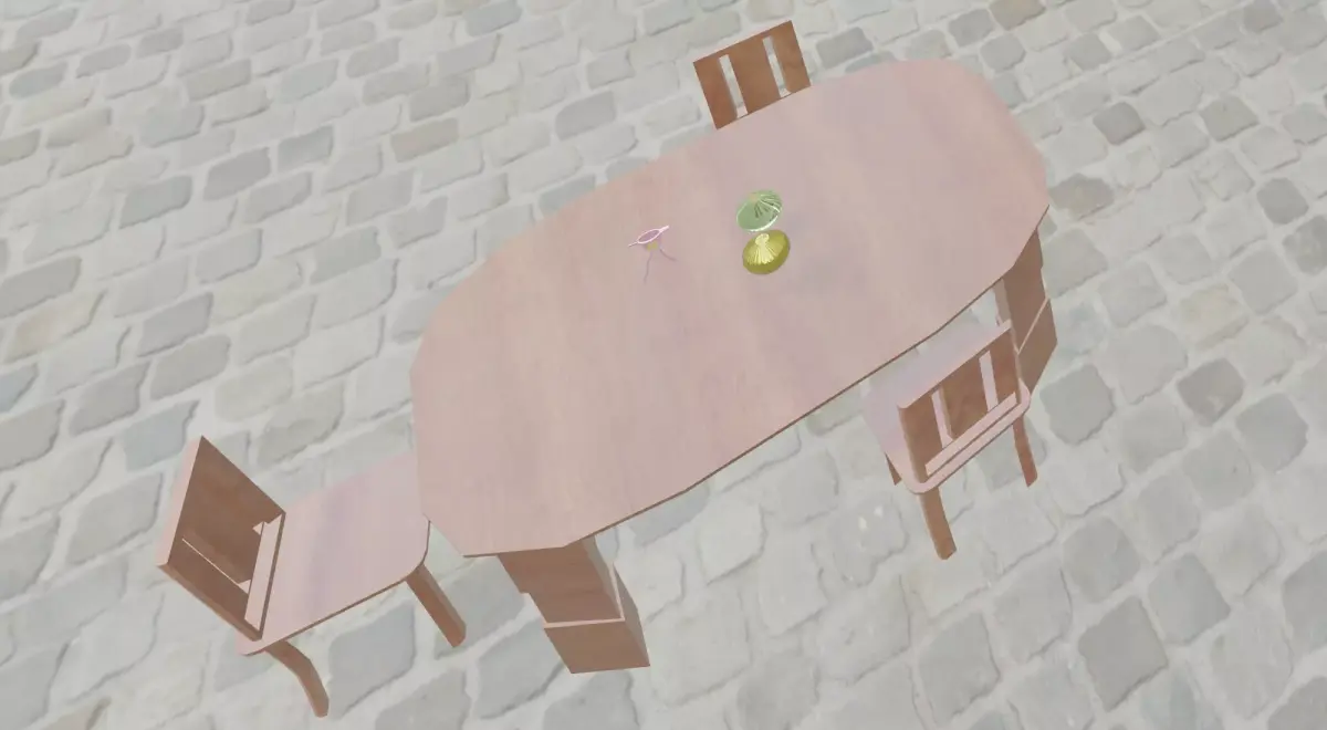 Avaiable formats: Blender format. Table, chairs, baozi, cup are avaiable in FBX format with basic textures. Scene in zip file name outdoor_street.7zip