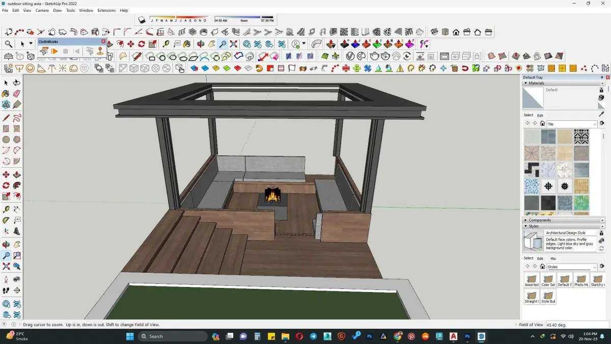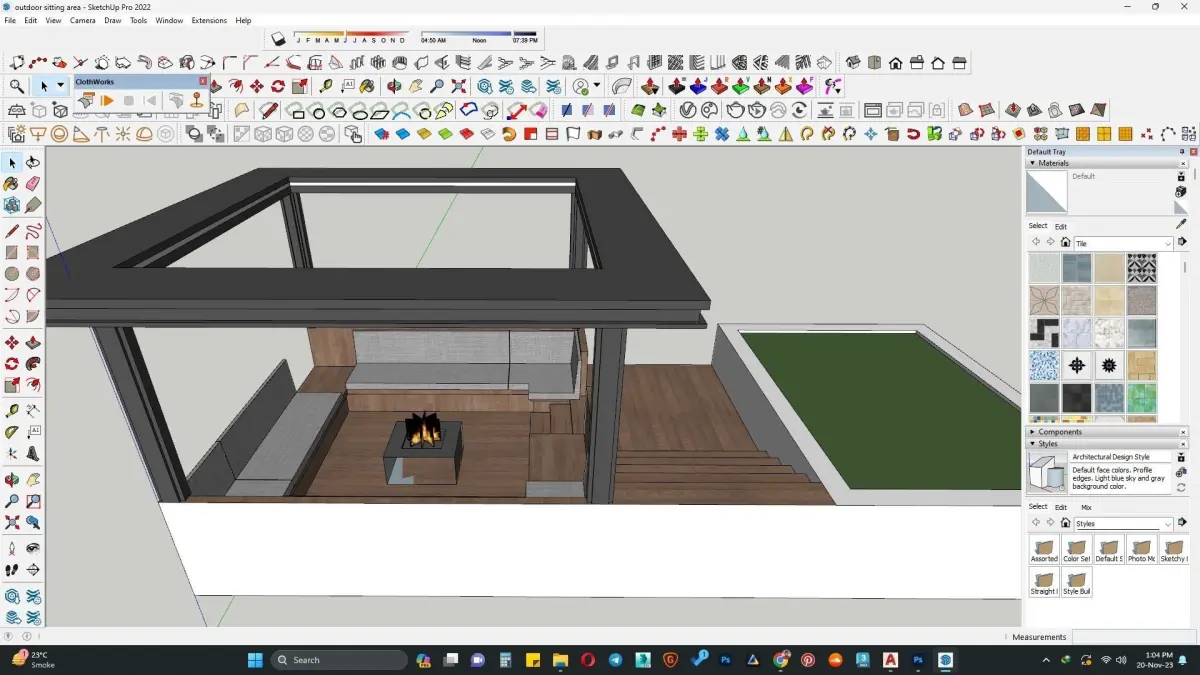 Outdoor sitting along with pargola 3D model