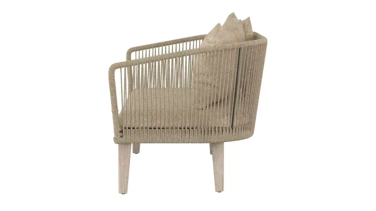 Design: PBR-ready outdoor sofa with a tropical, minimalist style.Materials: Weather-resistant woven rope, light oak legs, UV/water-resistant beige cushions.Dimensions: 1,069.632 mm (L) x 699.456 mm (D) x 771.907 mm (H).Capacity: Accommodates 2-3 people.Technical Specs: 611416 triangles, 305774 vertices, optimized for real-time rendering.Features: Curved armrest, plush cushions, natural wood finish, PBR textures.Applications: Optimized for AR/VR, suitable for Unity/Unreal Engine, virtual furniture displays.Formats: Available in FBX, OBJ, and MAX.Aesthetic: Resort-inspired, adaptable to modern or bohemian themes.Performance: High-quality mesh and textures for immersive, realistic AR/VR experiences.