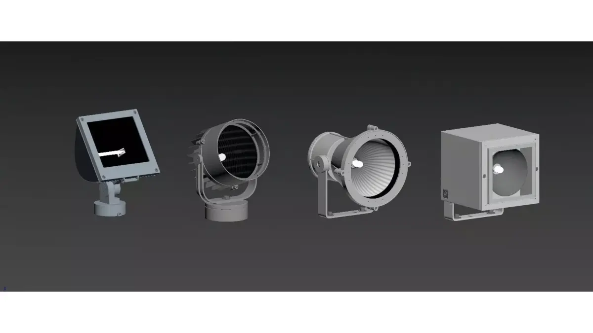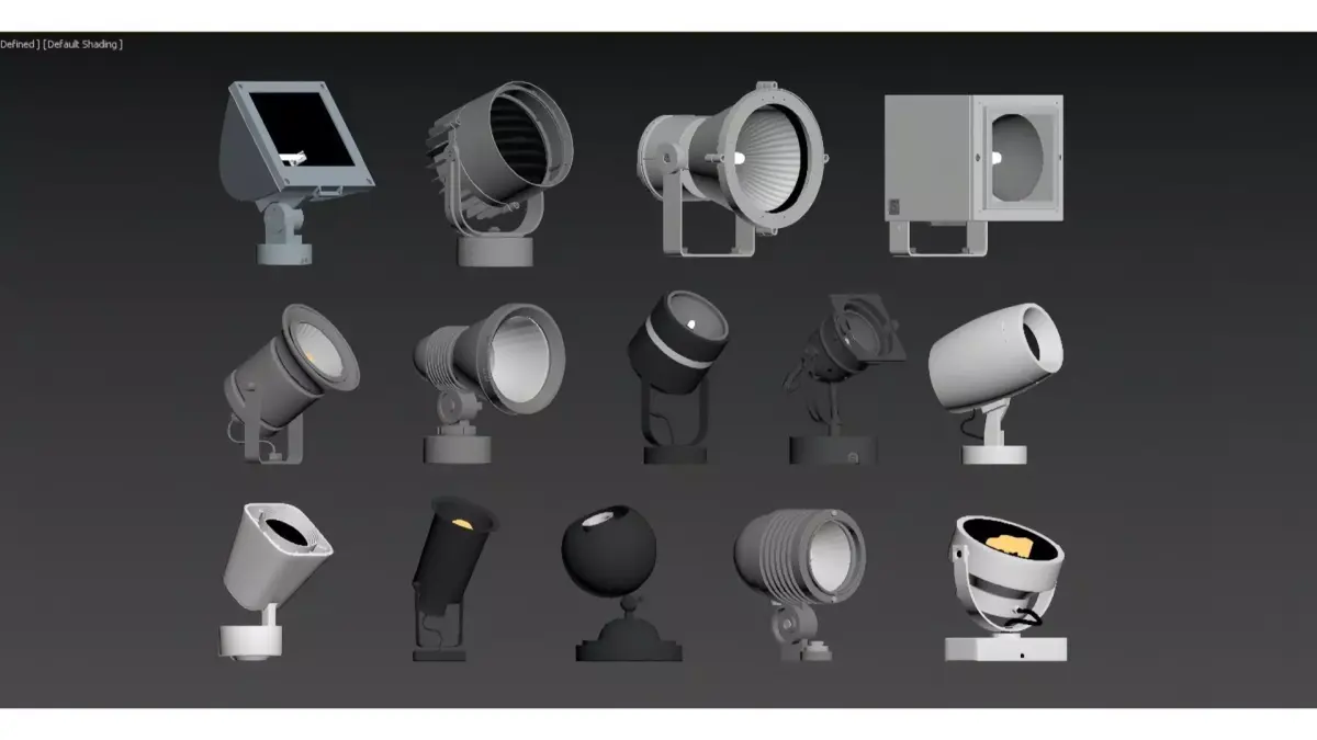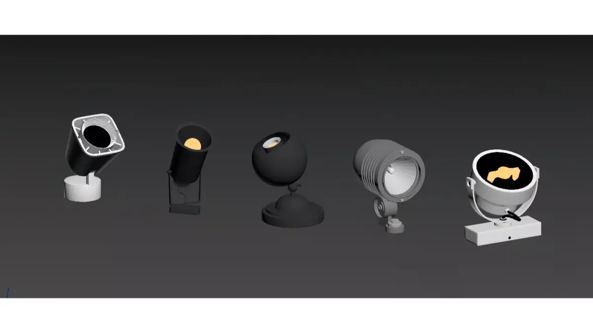 This is a collection of 3D model assets featuring various styles of spotlights and floodlights, covering a wide range of industrial and outdoor lighting fixture designs. The lamps predominantly feature a metallic appearance, with mainstream color options including black, gray, and white. Some models are equipped with adjustable brackets, enabling multi-angle light projection, making them suitable for scenarios such as architectural lighting, landscape illumination, stage lighting, and industrial site lighting. The models are rich in detail, incorporating structures like heat dissipation fins, waterproof casings, and reflector cups, and can be used for product design, rendering of visualizations, or presentation of engineering proposals.
