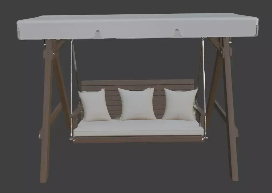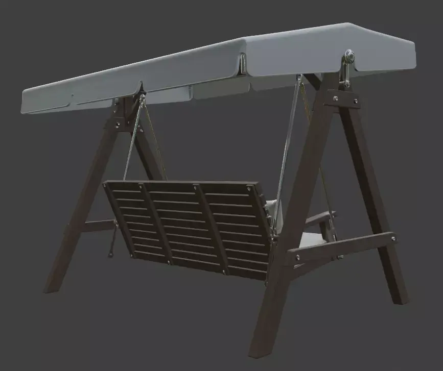 This clean and modern outdoor swing 3D model is perfect for your next project. It features a strong A-frame metal structure, thick cushioned seat with pillows, and sturdy black ropes. Great for garden scenes, patio renders, architectural visuals, or game environments. Comes with simple geometry and PBR textures for realistic results in any software. Easy to use in Blender, 3ds Max, Maya, Unreal Engine, Unity, and more. Multiple file formats included (FBX, OBJ, BLEND, STL, USDZ, GLTF.). Add this stylish swing to your cozy outdoor or living space designs today!