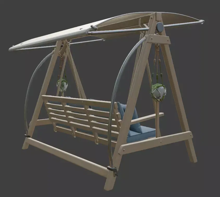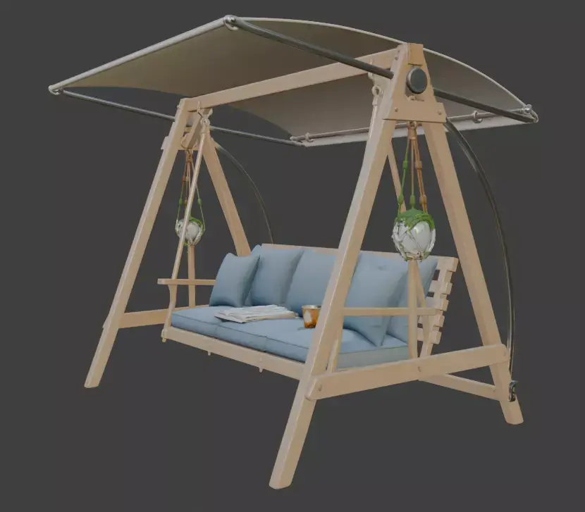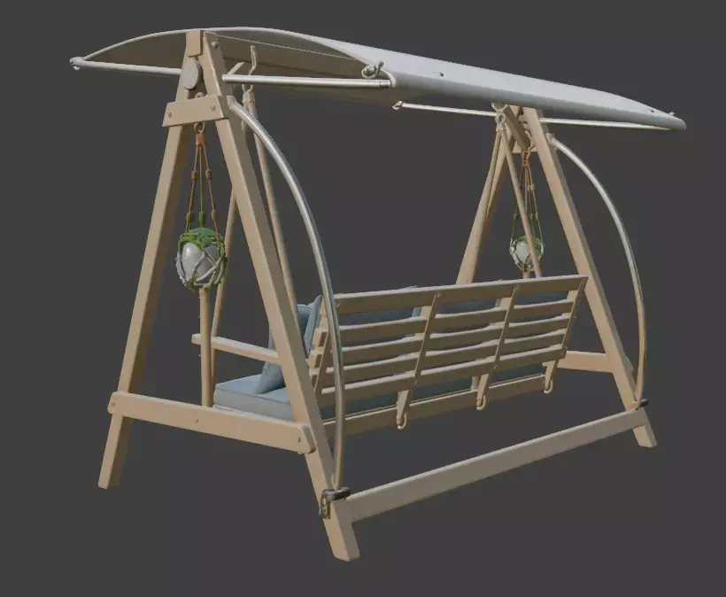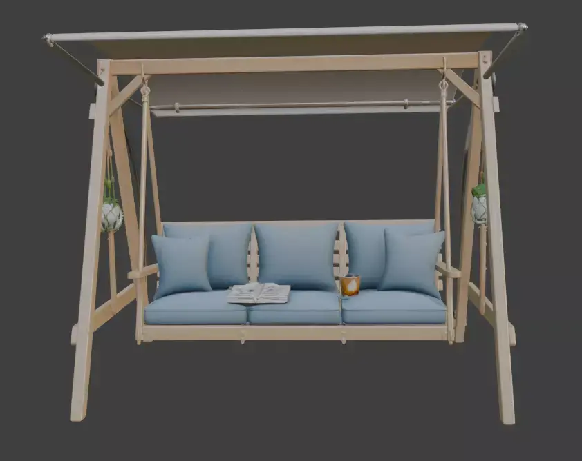 This clean and modern outdoor swing 3D model is perfect for your next project. It features a strong A-frame metal structure, thick cushioned seat with pillows, and sturdy black ropes. Great for garden scenes, patio renders, architectural visuals, or game environments. Comes with simple geometry and PBR textures for realistic results in any software. Easy to use in Blender, 3ds Max, Maya, Unreal Engine, Unity, and more. Multiple file formats included (FBX, OBJ, BLEND, STL, USDZ, GLTF.). Add this stylish swing to your cozy outdoor or living space designs today!