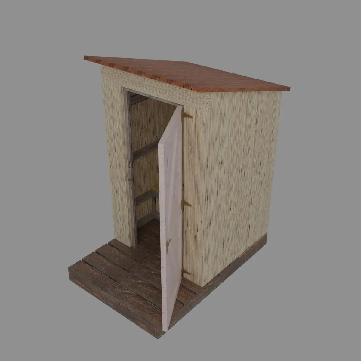 Outhouse may be a common modern word, but its origins — the Middle English “outhous” — are pretty old. Its use as a word to describe an outdoor toilet, however, are considerably more recent: American English from approximately 1819. The superstructure exists to shelter the user, and also to protect the toilet itself. The primary purpose of the building is for privacy and human comfort, and the walls and roof provide a visual screen and some protection from the elements. The outhouse also has the secondary role of protecting the toilet hole from sudden influxes of rainwater, which would flood the hole and flush untreated wastes into the underlying soils before they can decompose. Outhouses are commonly humble and utilitarian, made of lumber or plywood. This is especially so they can easily be moved when the earthen pit fills up.