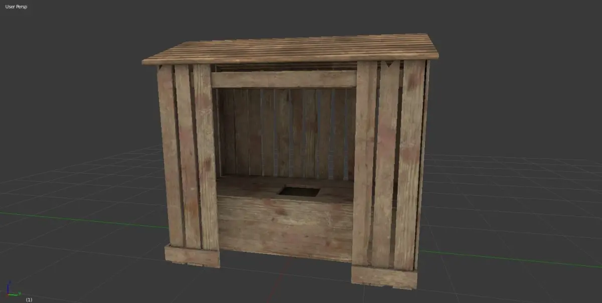 An old wooden outhouse from the American Wild West era. Works great in any modern game engines or for rendering purposes. The model is made up of one material. Both the interior and exterior are textured. Model is optimized and low poly. Suitable for both exterior and interior use.