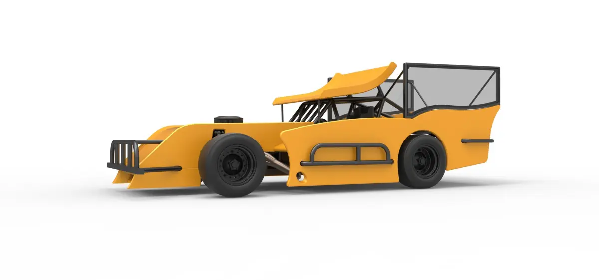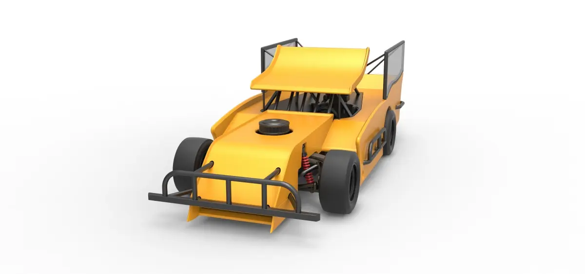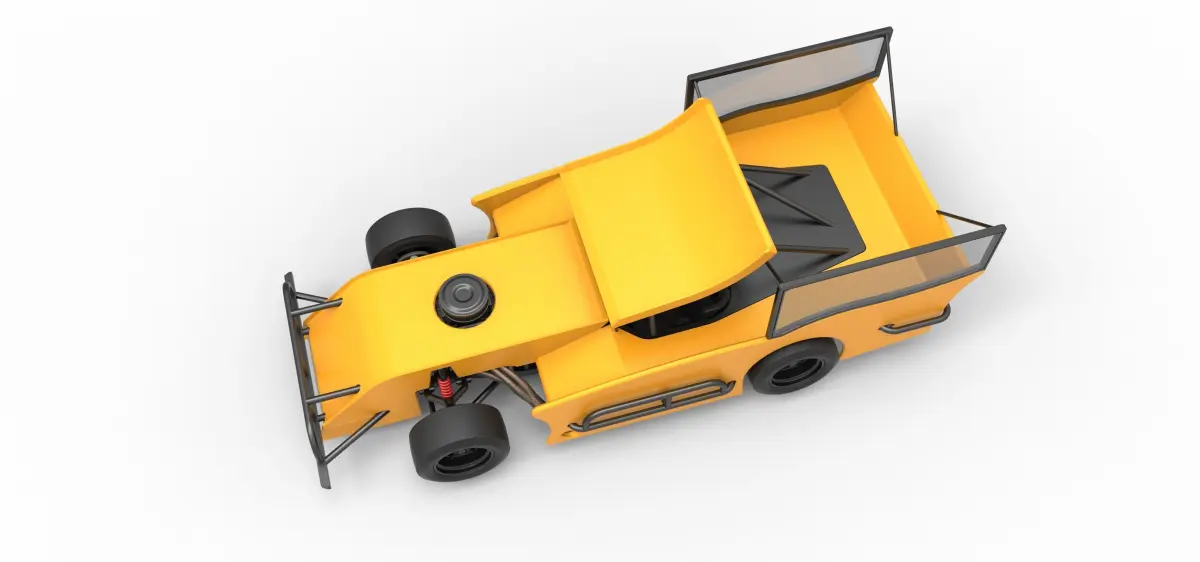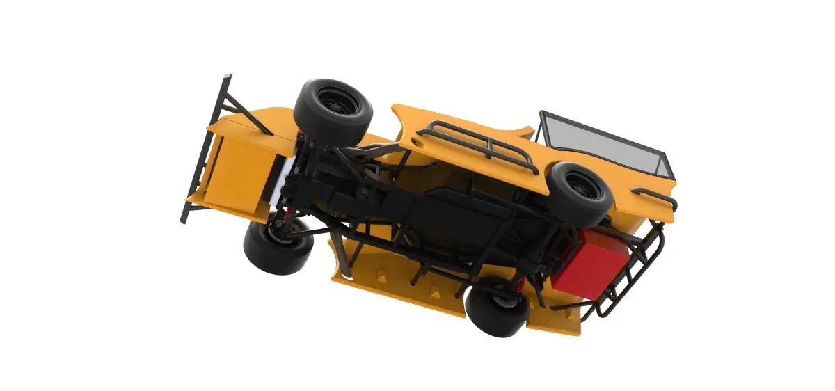 The model consists of parts: Air filter cap, Air filter, Body, Engine, Front bumper, Left exhaust pipes, Left side plate 1,2, Radiator, Right exhaust pipes, Right side plate 1,2, Rims, Seat, Shell, Shifter, Side wing left frame, Side wing right frame, Steering wheel, Tank, Tires, Top bar, Top wing.