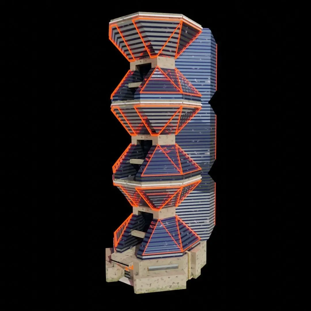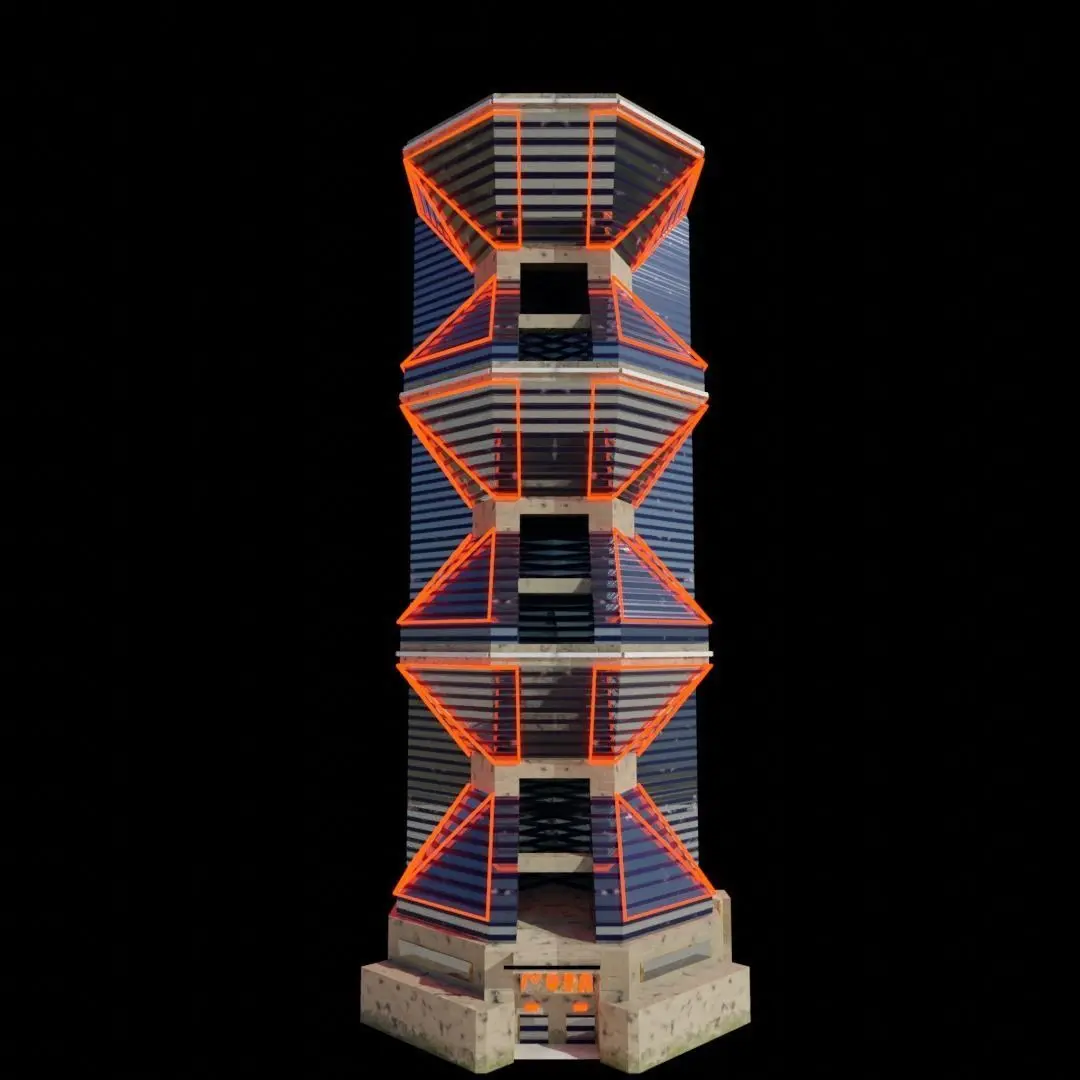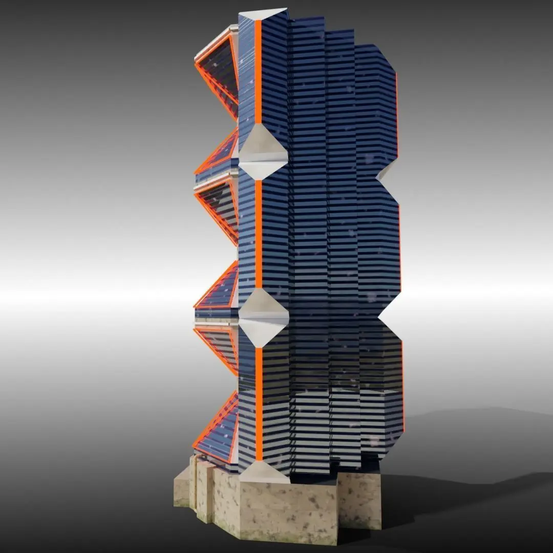 This is a model of a building / skyscraper made of steel and glass. Base of Building covered by stone tiles. Can be a hotel or typical city building.One object one material. Model consists of two object - one building and second object with light emmision material, which colour can be changed.Textures 1k : Normal Map, Diffuse Map, Roughness Map and Metallic Map.(Mesh details Object Building_X - 1000 polygons and object with light emmision Building_X_light - 600 polygons, UV unwraped - for half building, another side symetrized)