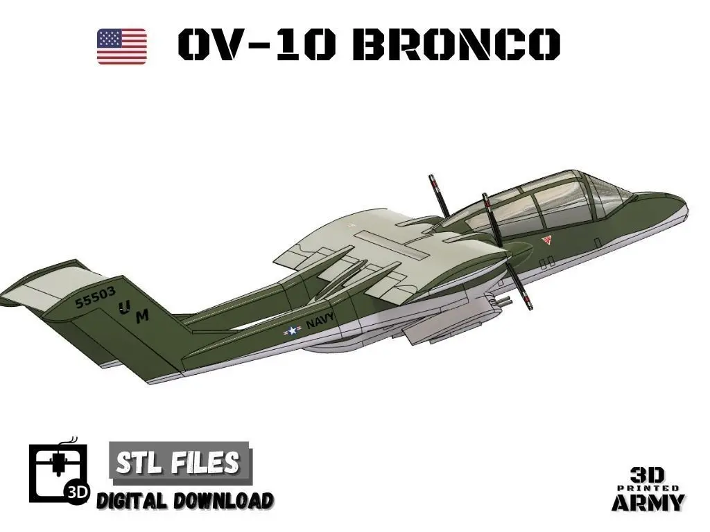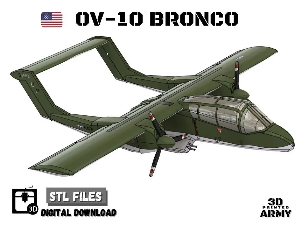 The OV-10 Bronco is an American twin-turboprop light attack and observation aircraft that was developed in the 1960s. Purpose-built for Forward Air Control and intended to fly off unimproved short fields with its high lift narrow wingspan wings, the Bronco excelled in observation, target marking, ground attack, and troop deployment roles. In recent times, Broncos continue service as firefighting aircraft and flying specialized evaluation missions against ISIS, and in 2020 is set to serve as a US Air Force JTAC training aircraft
