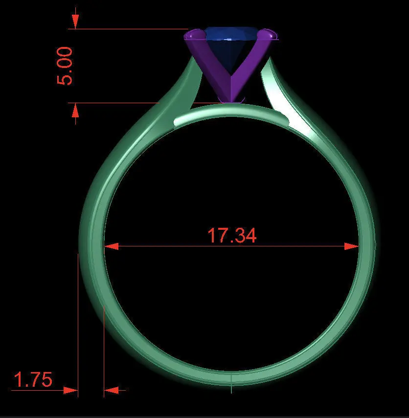 Model Details. Ring size US 7 (17.35mm inner diameter) Weight (6.20 Grams 18k Gold) Stone size ( 7.25mm x 5.25mm - 0.75-CT) Shank Width (3.60mm) Contact for any custom designs.