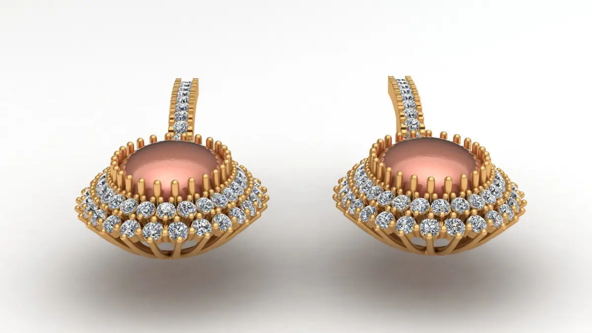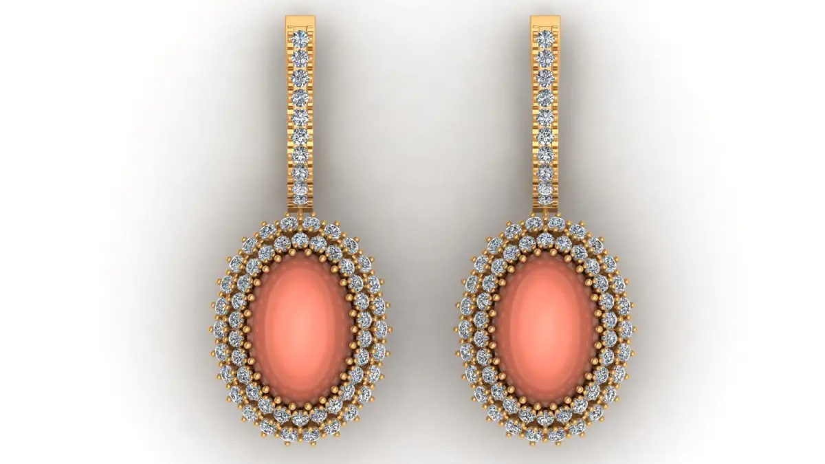 Oval Coral Diamond Fashion Gold Earring 3D print model