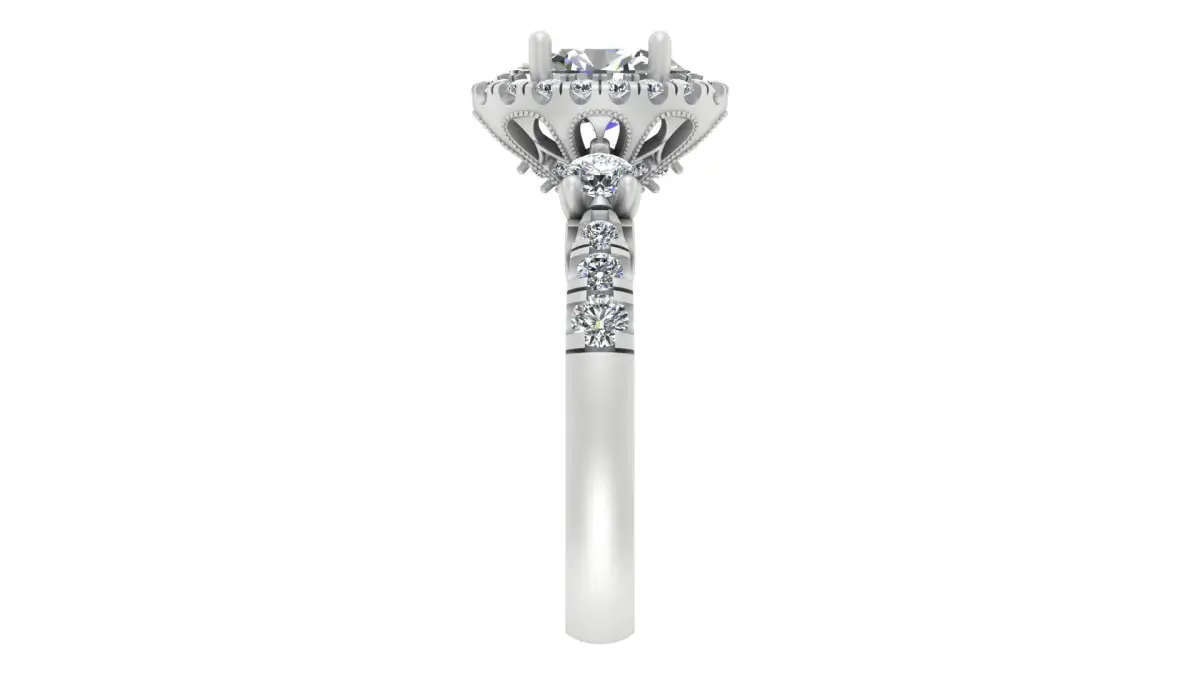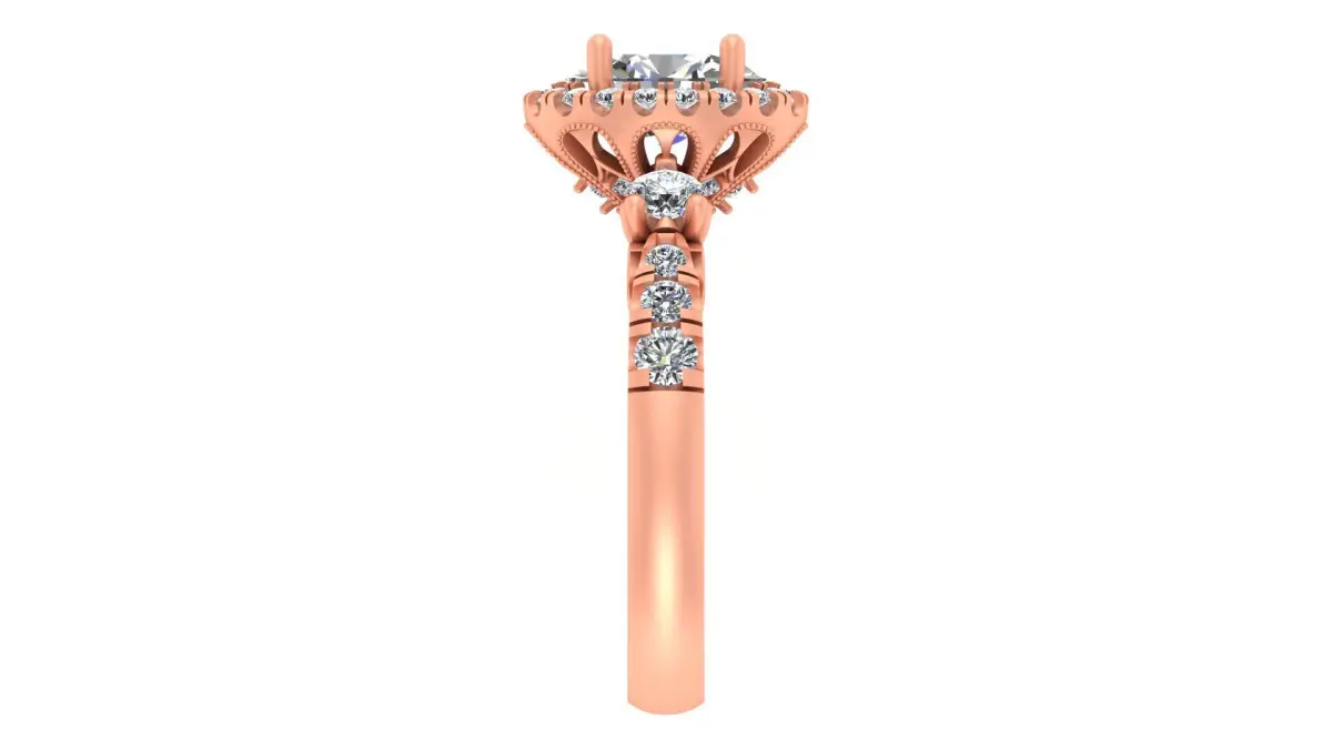 - Style: Elegant oval-cut halo ring with intricate vintage filigree details