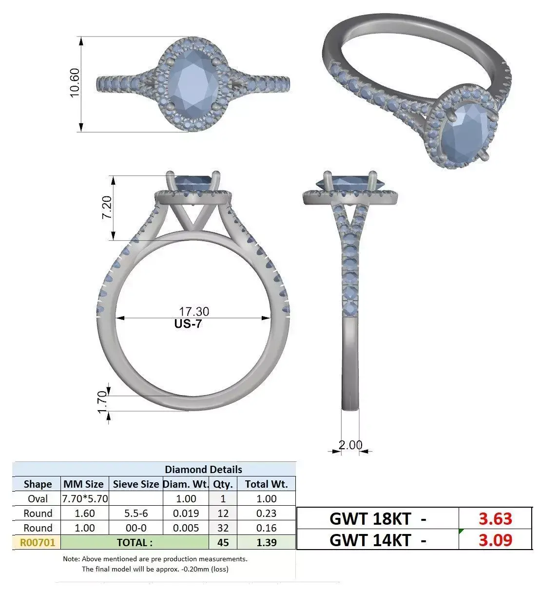 The elevated gallery structure allows optimal light entry into the center stone while maintaining strong support for casting and stone security. The pavé settings are evenly spaced and engineered for durability, ensuring safe production and long-term wear.