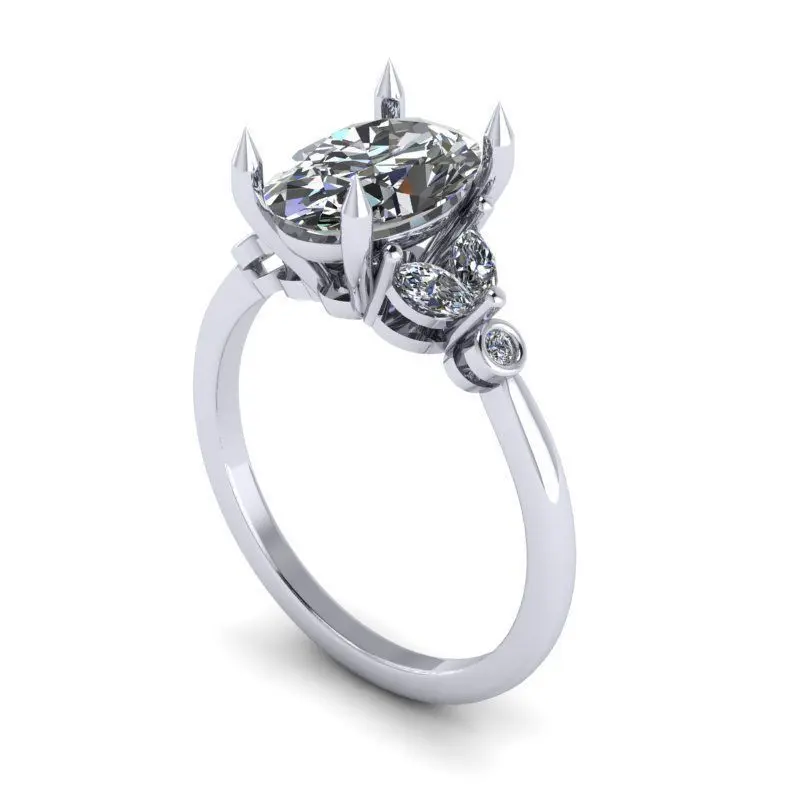Oval Diamond Engagement Ring with Marquise and Rounds 3D print model