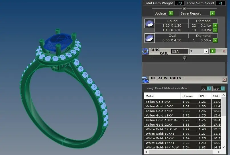 Diamond Size: 6.50mm X 4.50mm (center diamond), 1.20mm ( 22 stones), 1.10mm (18 stones)