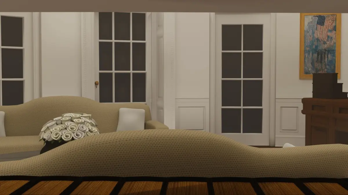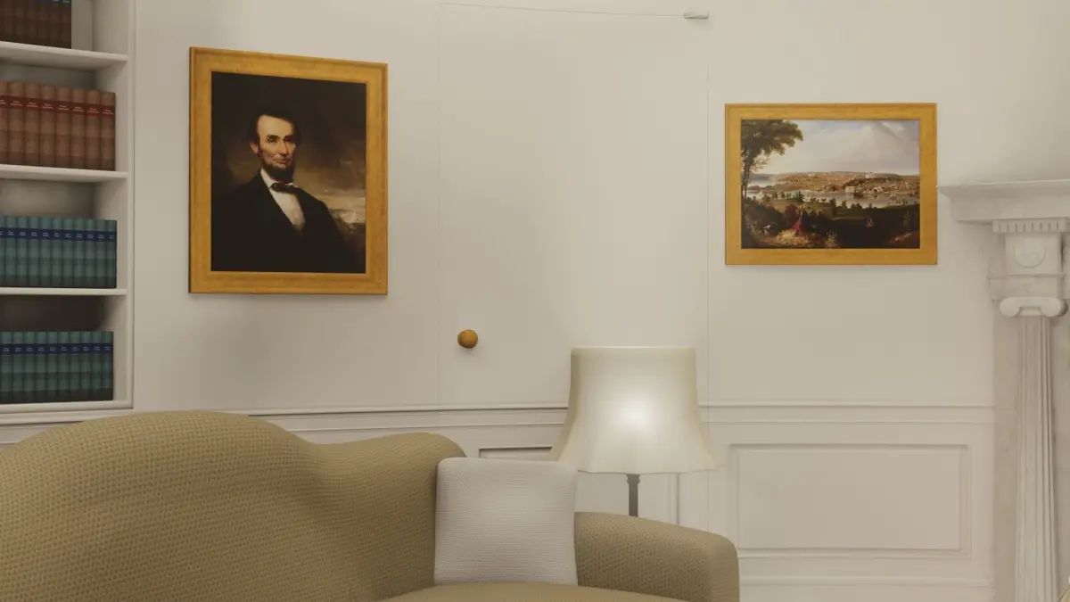 HQ Interior and Exterior of the Oval Office. The product contains detailed Presidential Oval Office and all the furniture and detaileds . All other parts of the exterior, which are not visible from the Oval Office and the rosary, are made in lower quality and have fewer details Features: