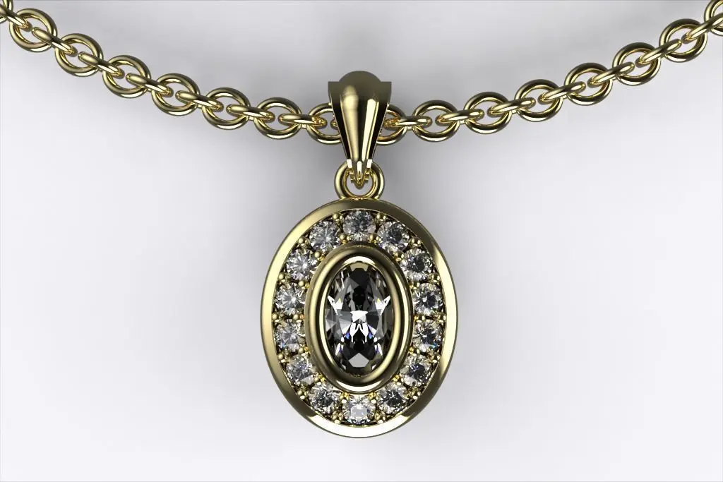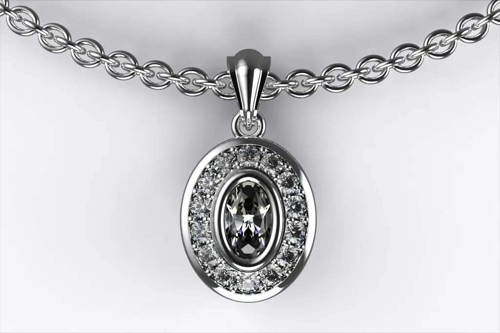 Home Catalog Oval Pendant Necklace with Diamond Accents 3D print model