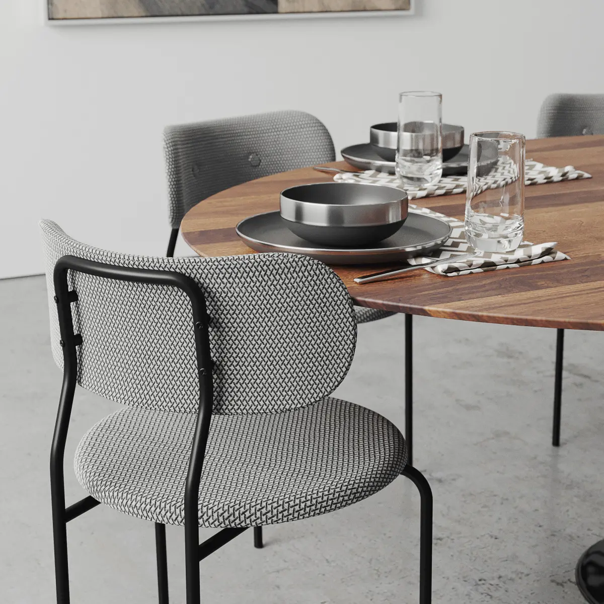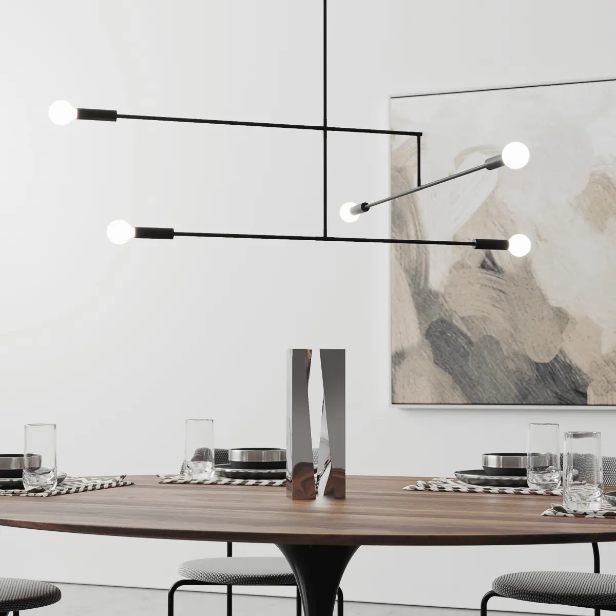 Set include:Walnut Oval Tulip Dining Table 78" / 198 cmGubi Coco Dining ChairAndrew Neyer - Big Mobile pendant light