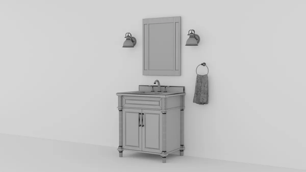 This 3d model of OVE Aberdeen 30 inch Impress Black vanity has a fully textured, detailed design that allows for close-up realistic renders.