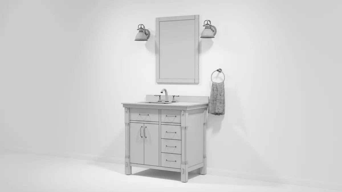 This 3d model of OVE Bellington 36 THD White vanity has a fully textured, detailed design that allows for close-up realistic renders.