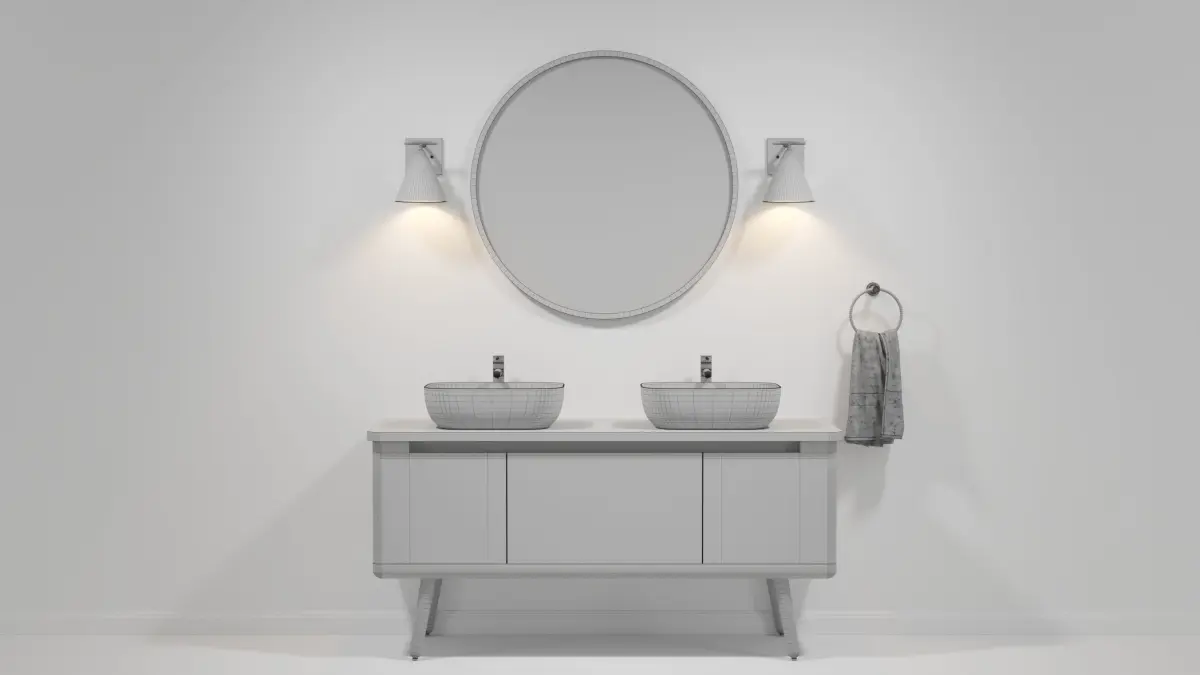 This 3d model of OVE Contrell 60 White vanity has a fully textured, detailed design that allows for close-up realistic renders.