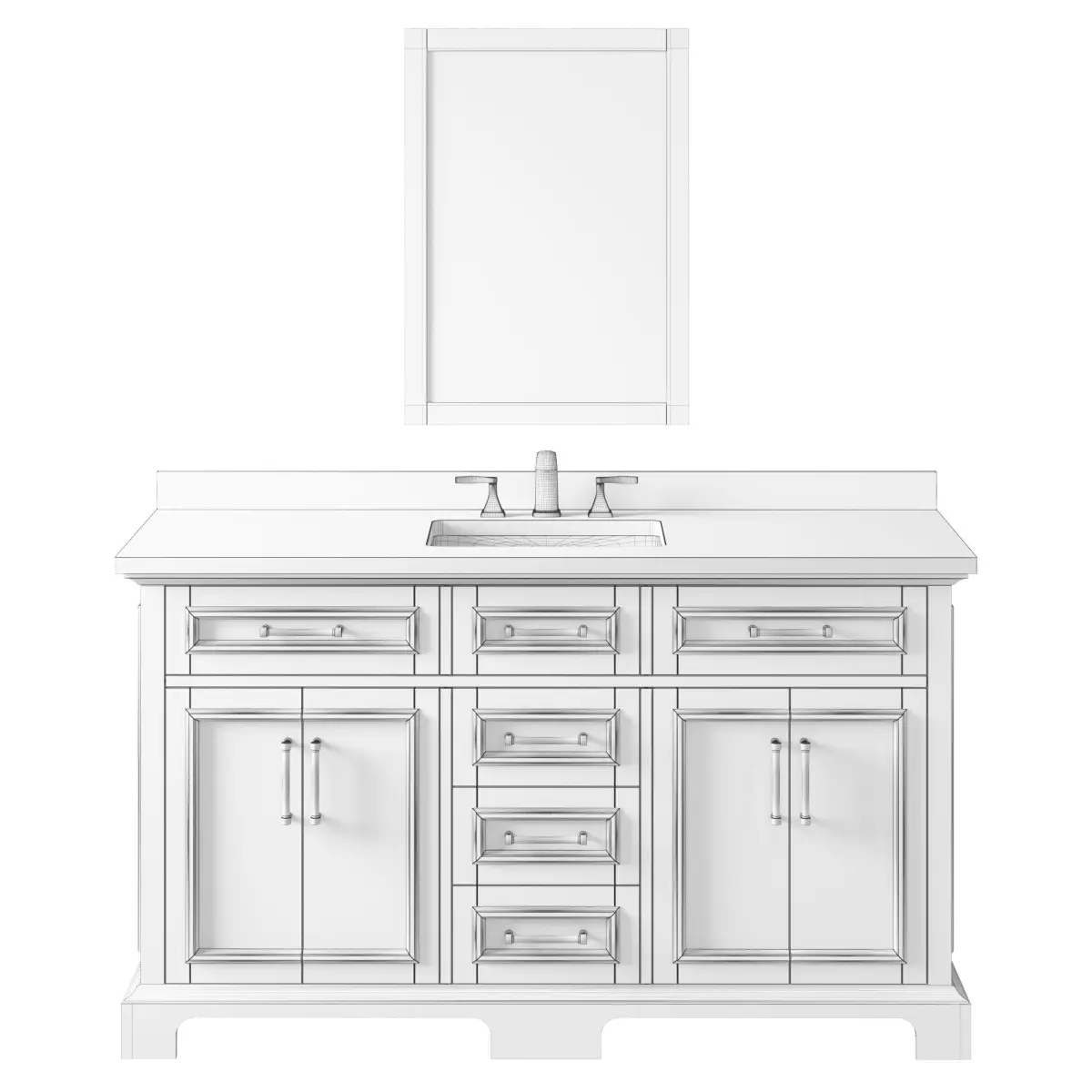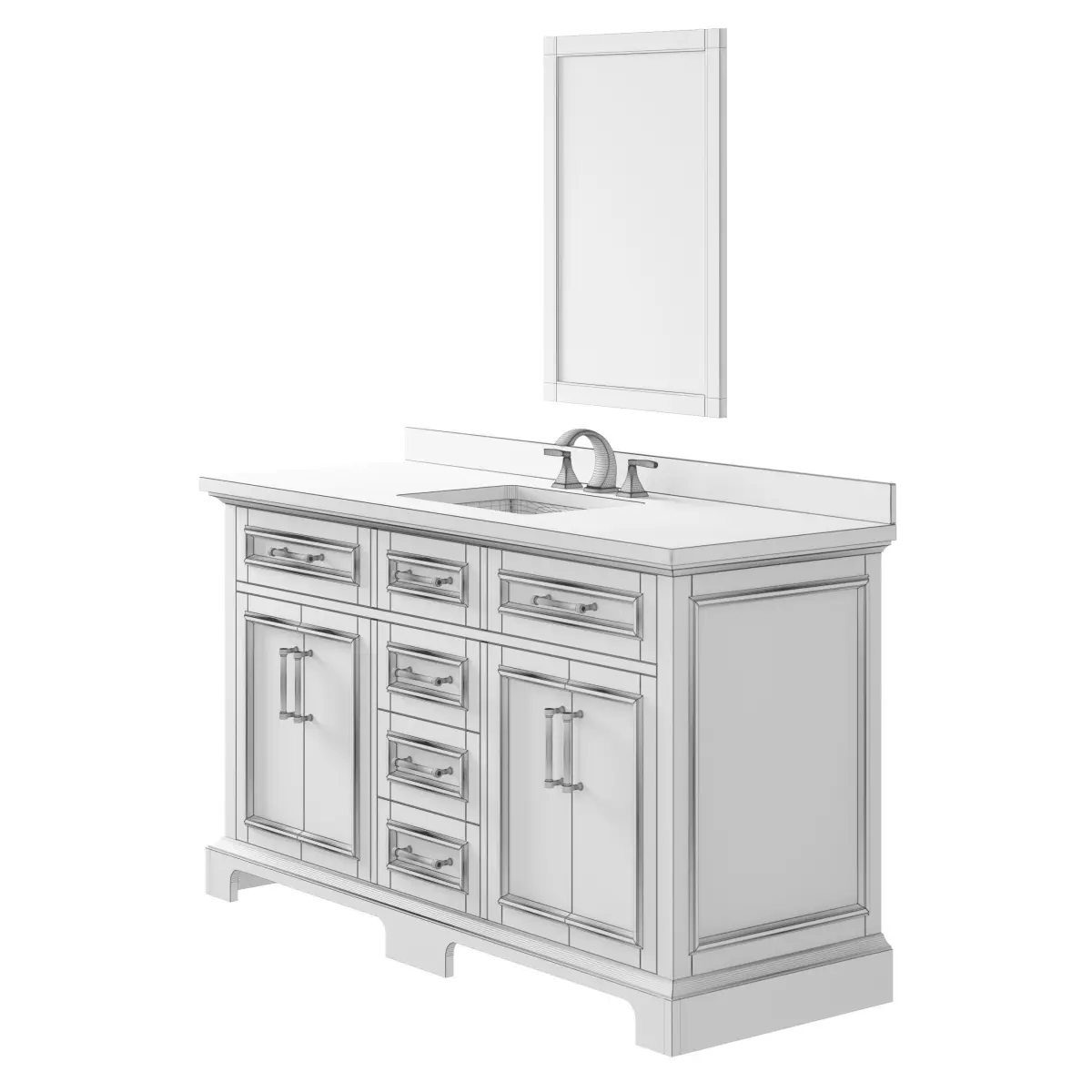 This 3d model of OVE Sarah II 60 Vanity has a fully textured, detailed design that allows for close-up realistic renders.