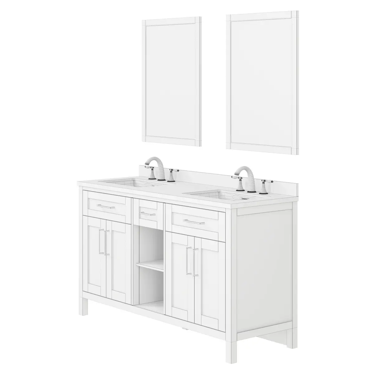 This 3d model of OVE Tahoe 60 Open Shelf Vanity has a fully textured, detailed design that allows for close-up realistic renders.