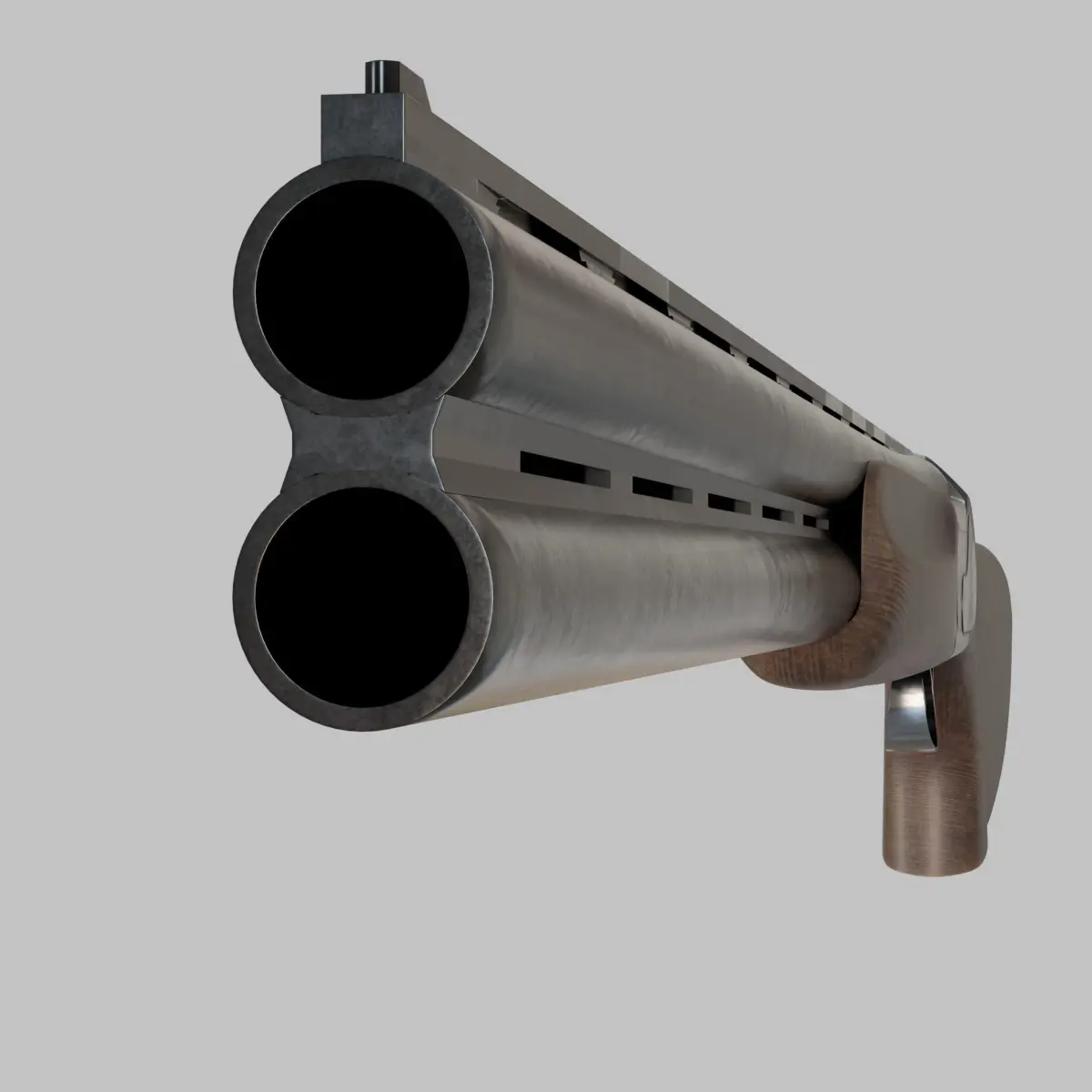An over-under Double Barreled Shotgun.The model is originally made in Blender and supports subdivision surfaces; FBX format is provided in standard and No Subdivision version with lower polygons count.PBR materials with 4096x4096 pixels texture maps.Unit of measure: millimeters (real-world scale).