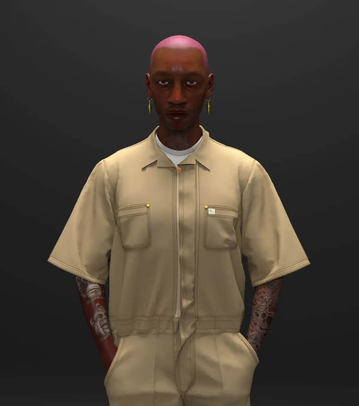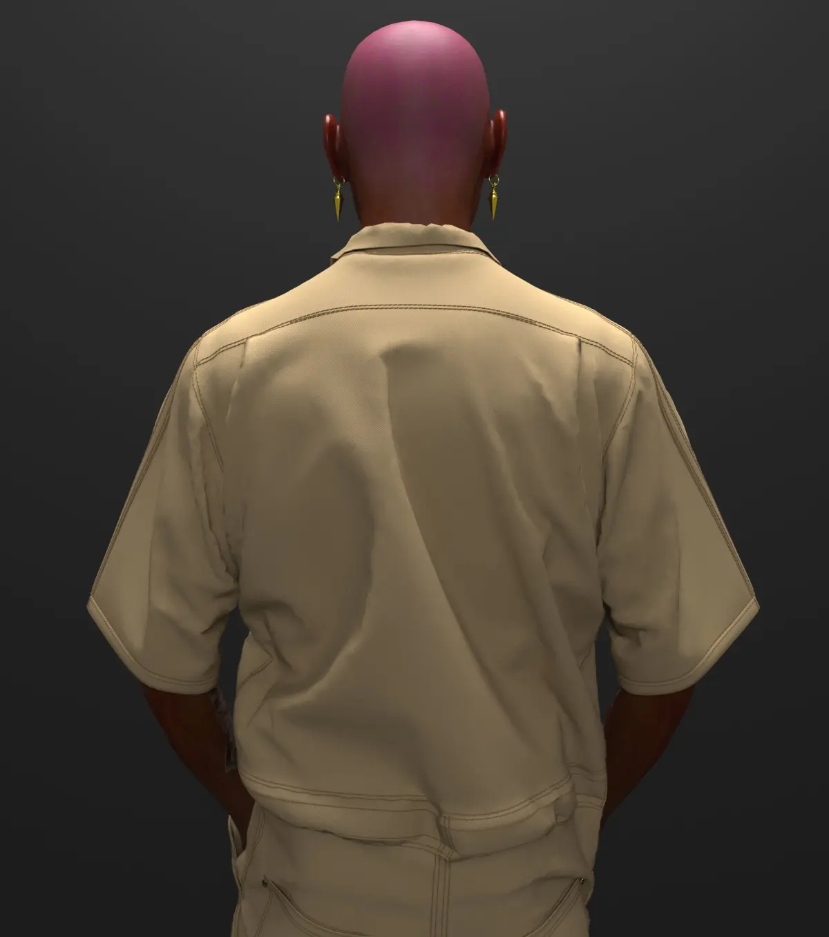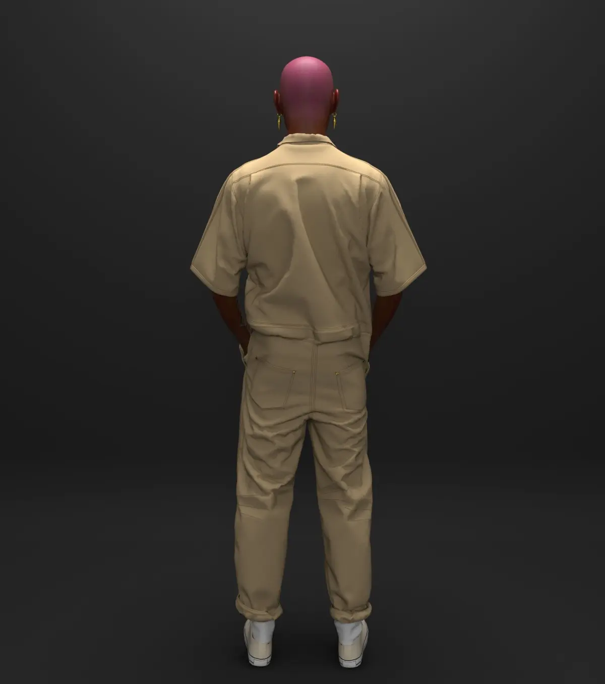 Overalls made of thick light brown denim fabricСharacter included