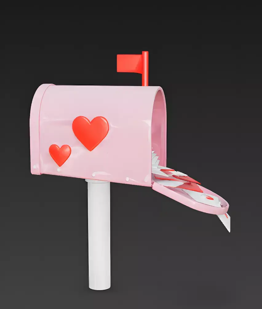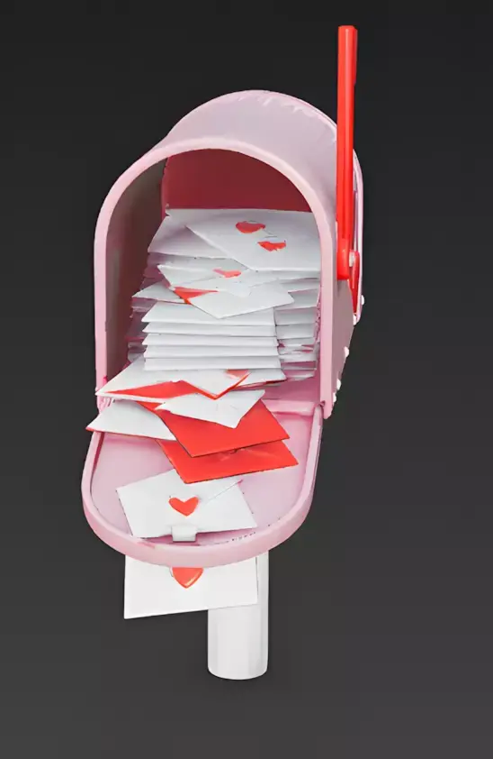 The Overall Concept This asset captures the excitement of receiving a love letter. It is a classic American-style mailbox that is completely stuffed with romantic messages, making it an adorable prop for Valentine's Day events or social messaging features.