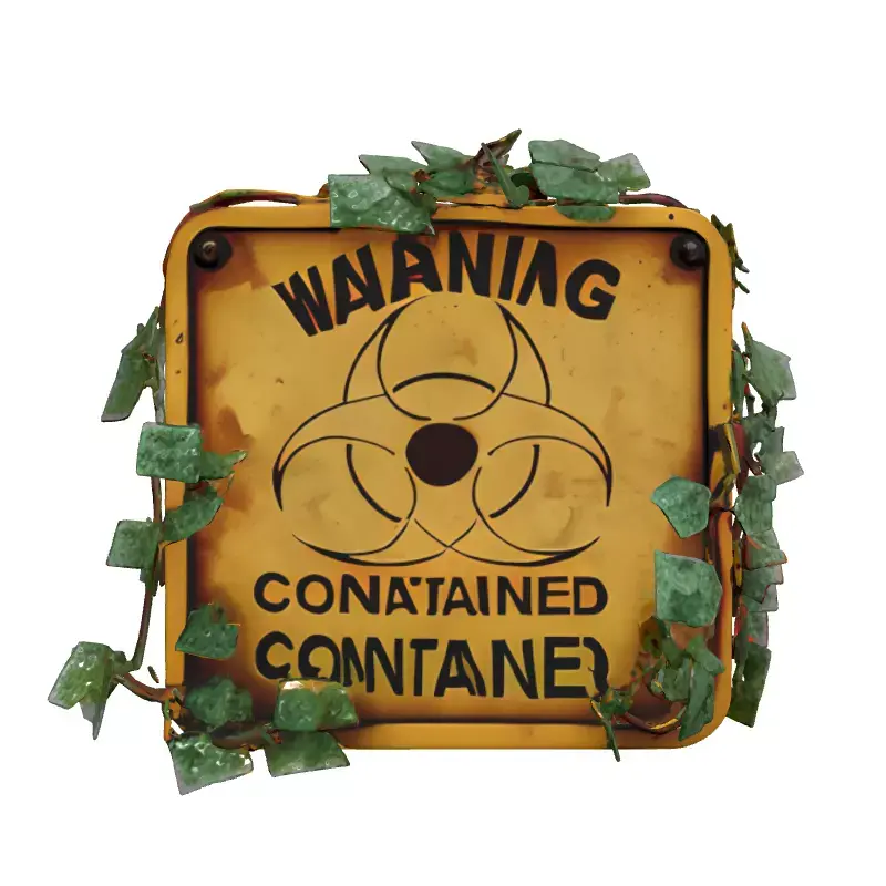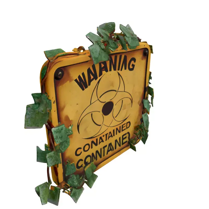 This highly detailed 3D model presents a weathered and rusted biohazard warning sign, intricately overgrown with vibrant green ivy vines. The rectangular sign features a prominent black biohazard symbol and the text 'WARNING' and 'CONTAINED', all set against a distressed yellow background with realistic rust and paint wear. This asset is ideal for creating immersive and authentic environments in game development, particularly for post-apocalyptic, abandoned, survival, or horror-themed projects. It is also perfectly suited for architectural visualizations depicting derelict or forgotten structures, as well as captivating digital art scenes and cinematic renders. The model is optimized for both real-time applications like AR/VR and high-quality static renderings, featuring clean topology and efficient polygon distribution. It comes fully UV unwrapped, ensuring seamless texture application and PBR (Physically Based Rendering) workflows. PBR textures are included, providing lifelike details for rust, peeling paint, and the organic structure of the ivy. Supported file formats typically include GLB, OBJ, STL, ABC, DAE, FBX, USD, and PLY, ensuring broad compatibility across major 3D software and game engines. This model serves as an excellent environmental prop, adding depth and storytelling to any scene, whether for close-up shots or integration into larger, complex landscapes.