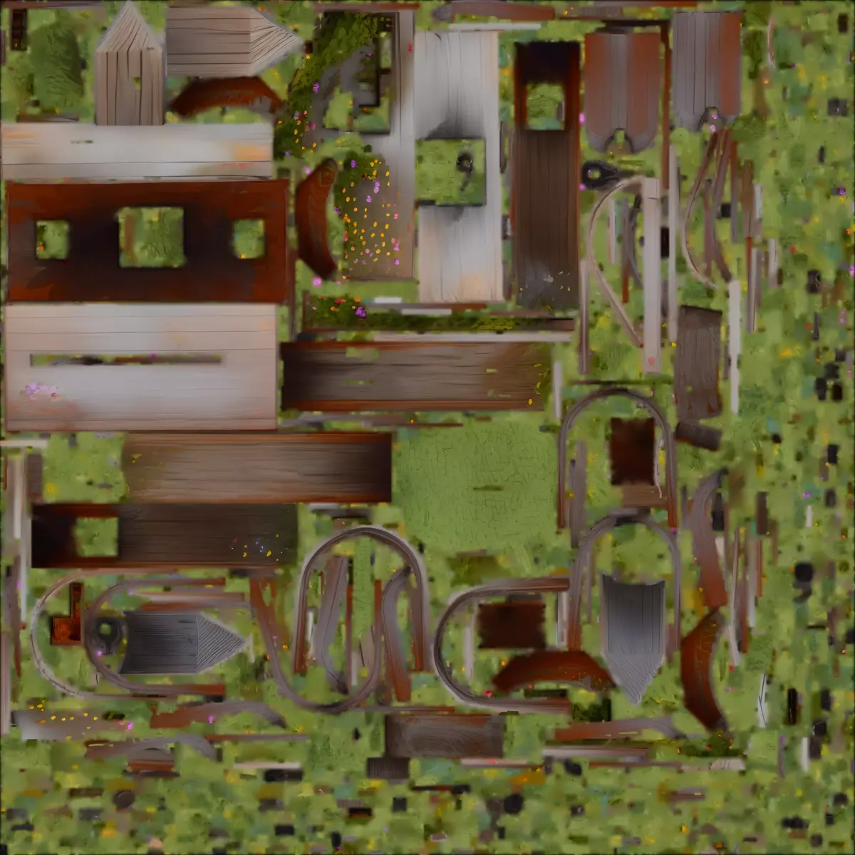 Overgrown Aesthetic: Covered in realistic wildflowers, vines, and lush green grass.