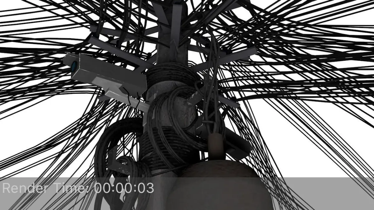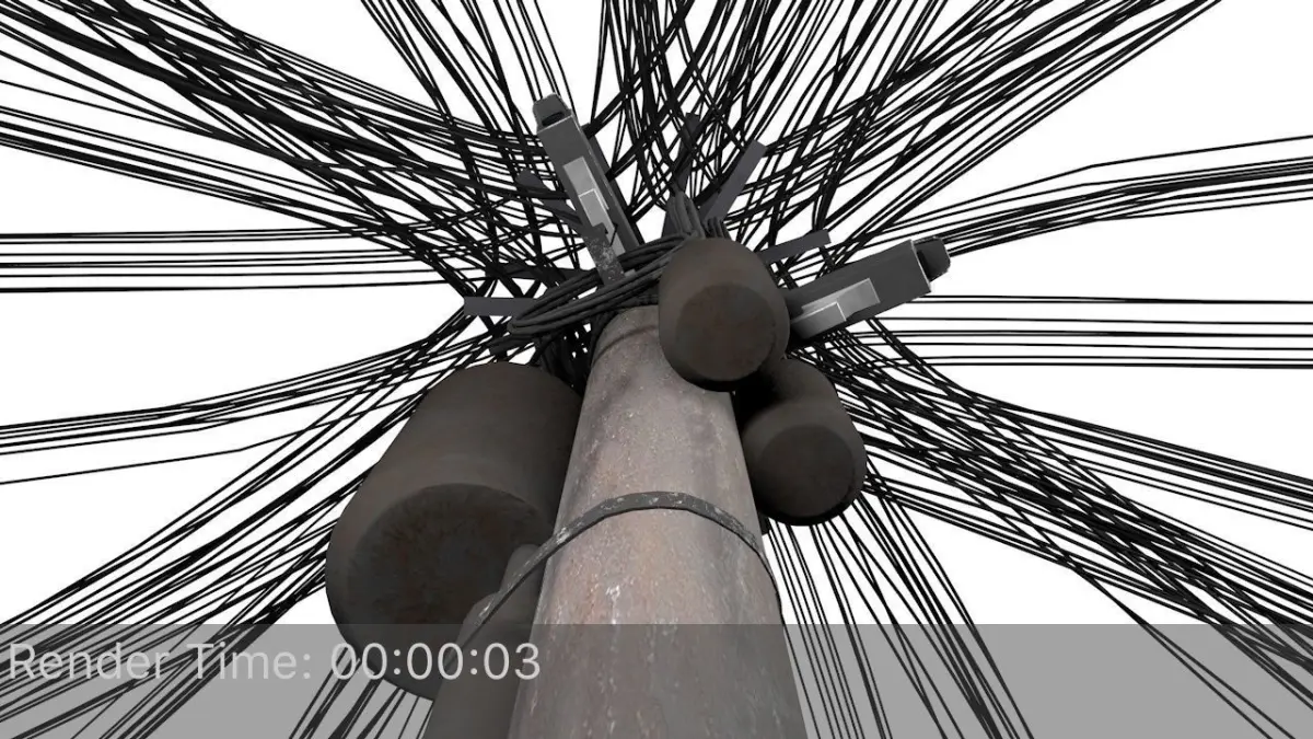 - this model has the following objects : 10 cable groups that can be turned off/on, electric pole, 3 cameras, cable holder/splitter objects