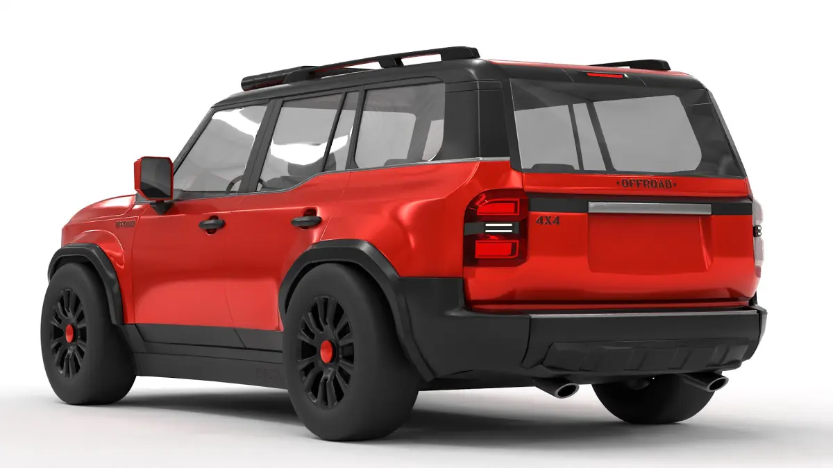 A sleek and compact off-road vehicle, boasting a vibrant red exterior, blacked-out grille, and oversized fender flares, designed for city dwellers looking to escape the urban jungle and embark on weekend adventures in style, a perfect representation of current overland vehicle trends.